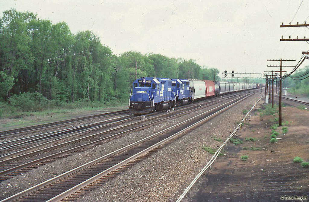 Conrail GP38-2 8051 is seen leading a westbound freight into MO interlocking in Cresson, PA in 1986. Too bad we don't have a better view of those cool El Rexene and DuPont Alathon plastic covered hoppers that are on the head end of the train.