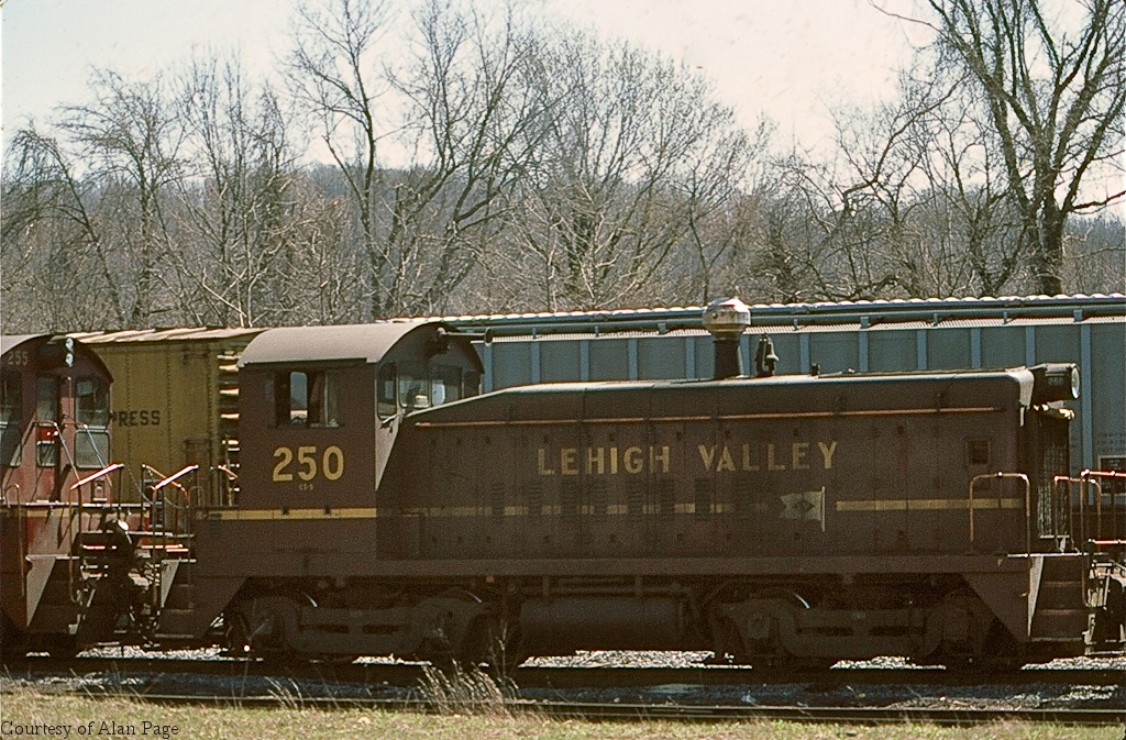 LV 250 (CR 8664), first in LV's series of 250-276 SW-8M's, works in a quartet of all LV colors at Bethlehem yard in April, 1977.