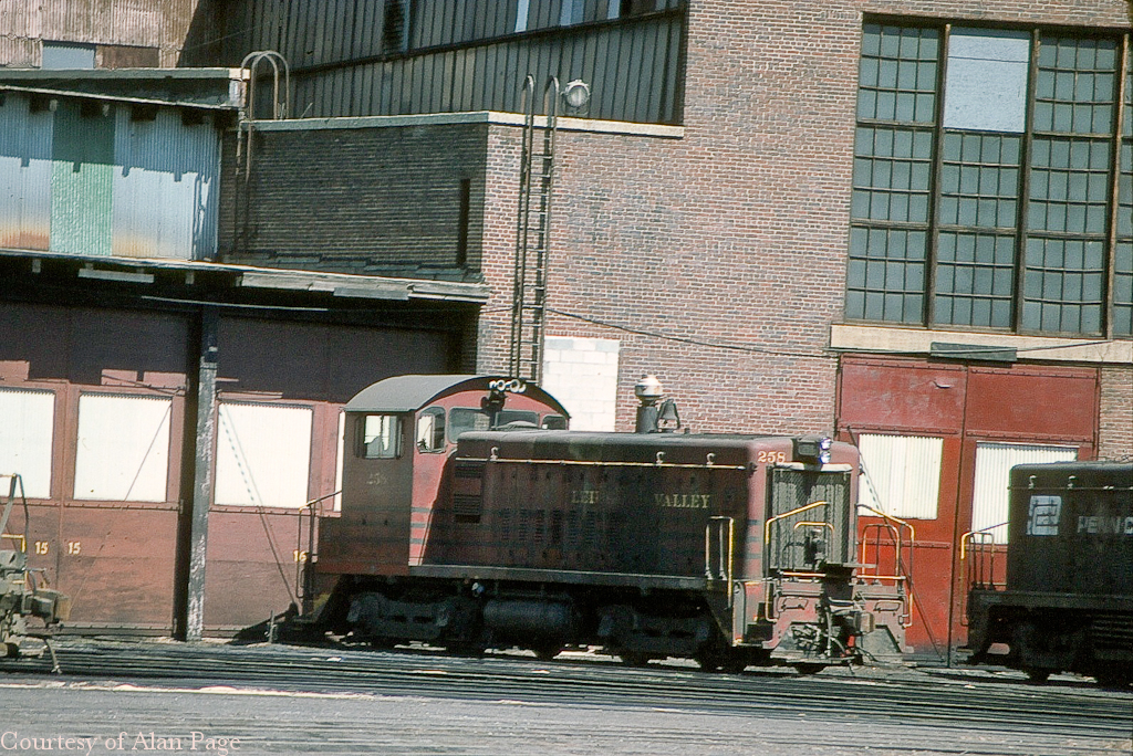 LV 258 SW8, soon to be CR 8672, rests outside the Bethlehem roundhouse alongside PC NW2 9160 in April, 1977.