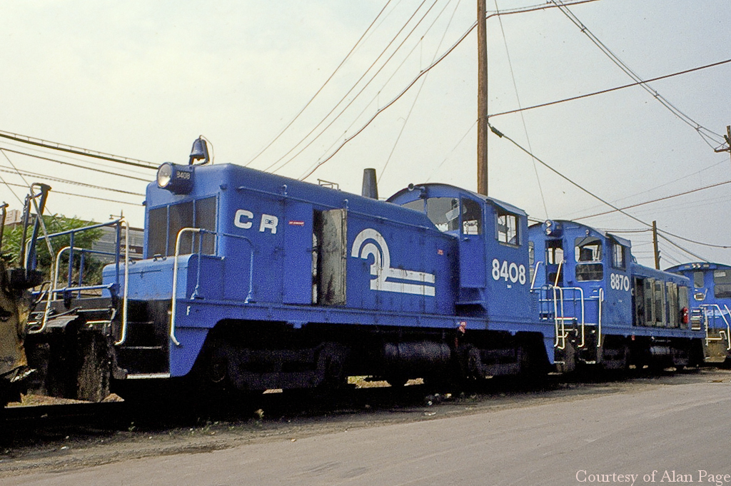 CR SW-7 8870 (ex-CNJ 1082) rests in the service line outside the Elizabethport shops with SW-1 8408 in August, 1979.