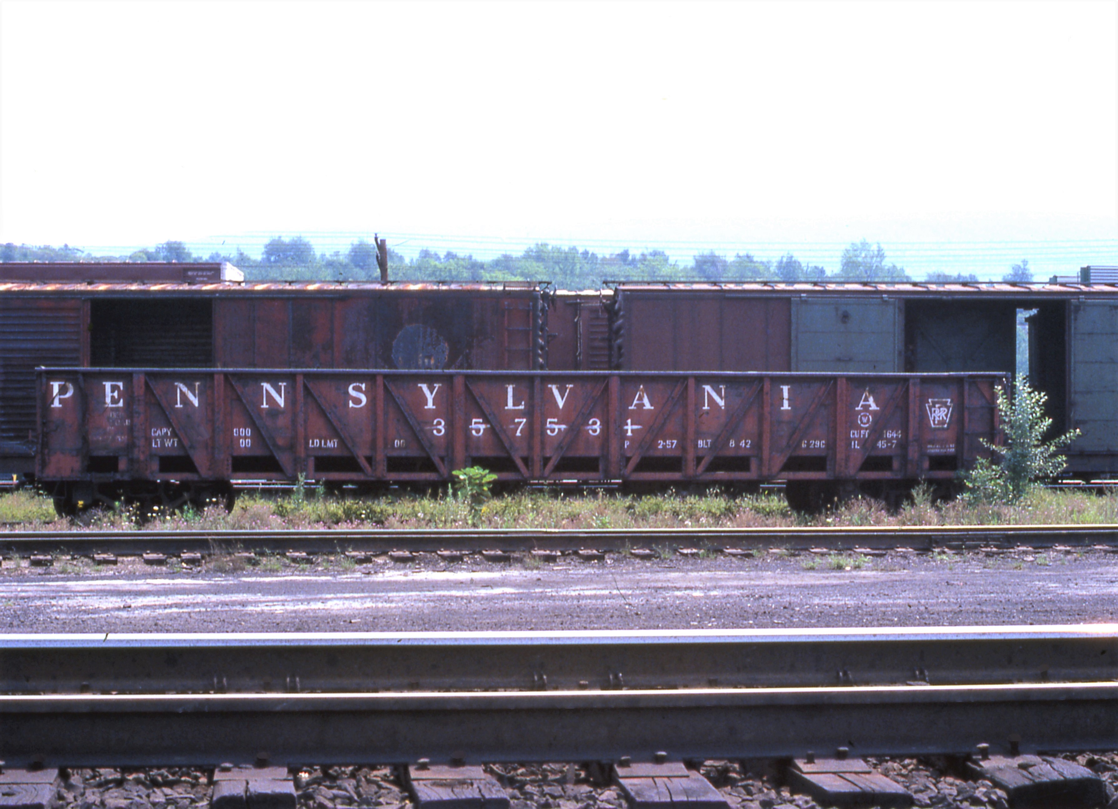 CR Ex PRR gondola #357531, Altoona, PA. 8/15/77