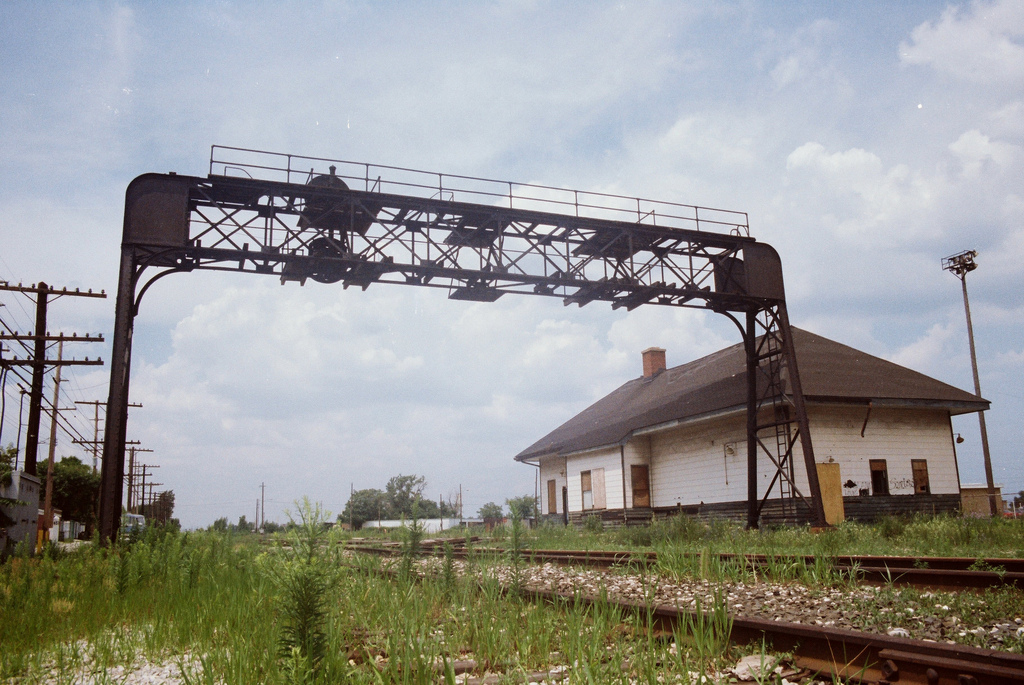 Former PRR depot at Whiting, IN in June 1982. The weeds growing in the tracks foreshadow the eventual abandonment of this part of the PRR Ft. Wayne line. Doug Davidson photo with permission