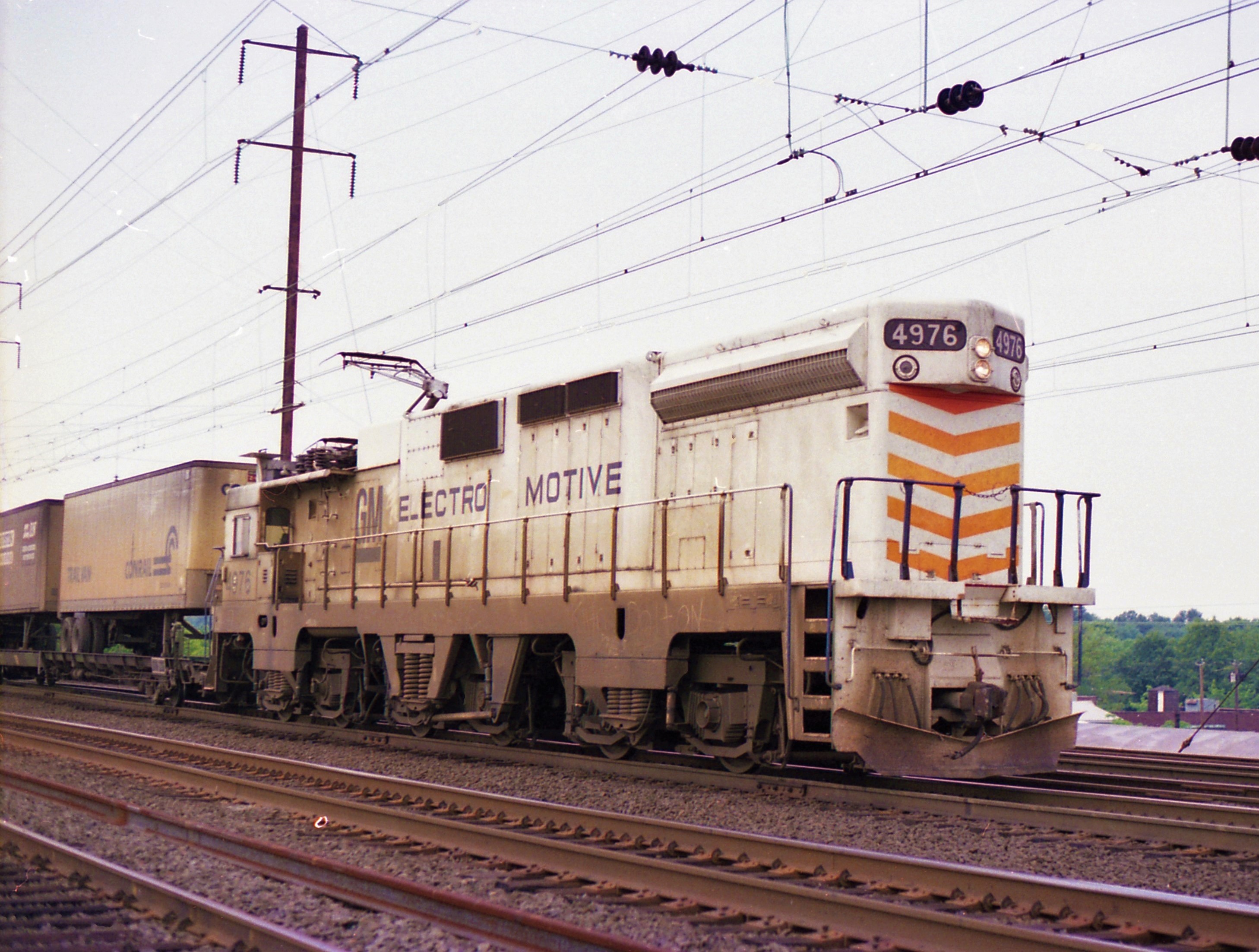 Conrail.  EMD experimental electric GM-10 #4976 (1976) eastbound at North Rahway, NJ. September 6,1984