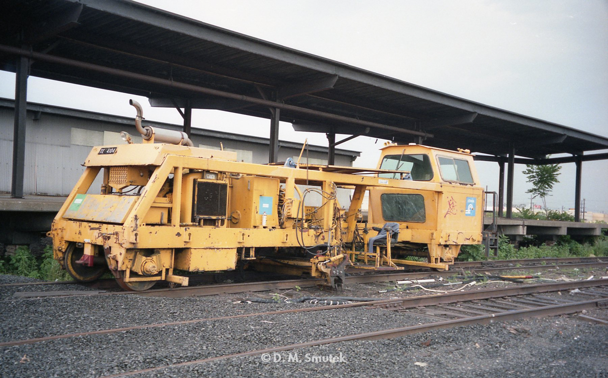 TE 4104 is seen in the former CNJ yard in Elizabthport NJ during the spring of 2000. This was a Tie Remover / Inserter mounted on a Plasser American production tamper platform. The tamper functions were removed during the conversion. Conrail had several of these repurposed machines and were most likely rebuilt at the System Maintenance of Way Shop in Canton Ohio.