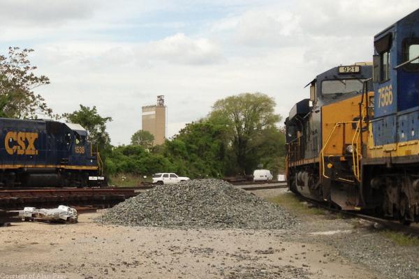 CSX GP15-1 1538 (CR 1622) and GP40-2 6399 work at the wye of Bay View yard in Baltimore on May 10, 2014.