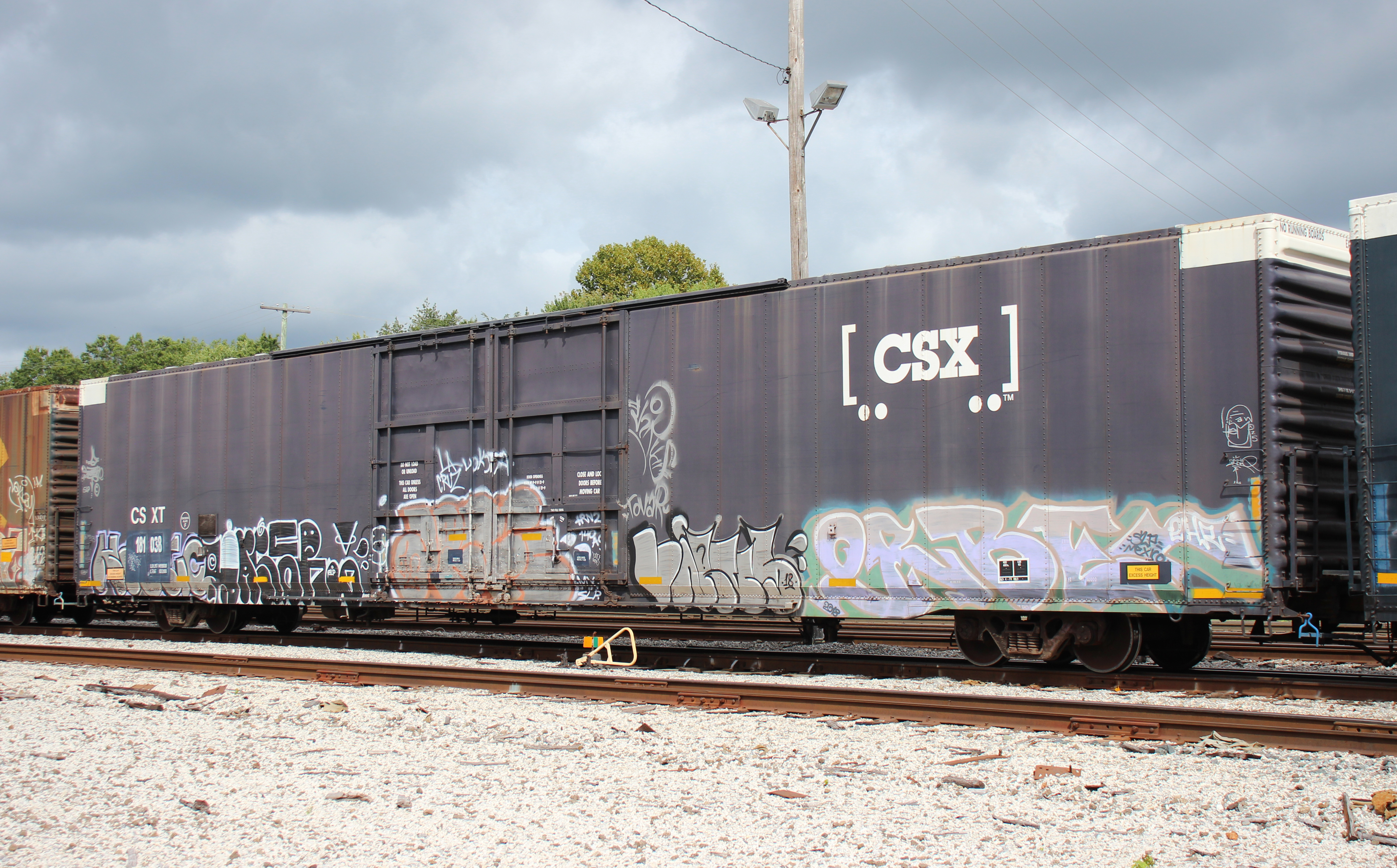 CSXT 181038 is seen at Elsmere, DE on 8/24/25. Car is ex NYC 297695/CR 297695 and was built 4-78 by Greenville Steel. It was painted by MEI ESTL in 11-13.