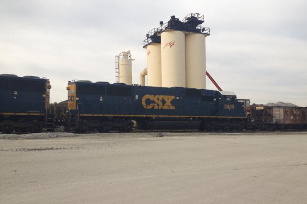 A pair of SD50-2's, CSXT 2490 (CSX 8659 / CR 6739) and 8637 (ex-C&O) work a line of hoppers at E.R. Snell in Tyrone, GA on February 28, 2014. The former CR SD50 was derated by CSX to 3,000hp and reclassed as an SD50-2.
