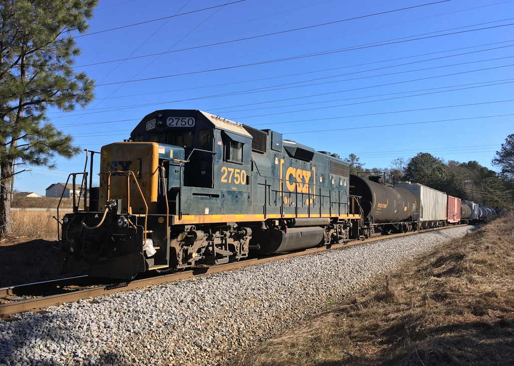 CSXT GP38-2 2750 (CR 8184) waits for green at Fairburn, GA on January 4, 2018.