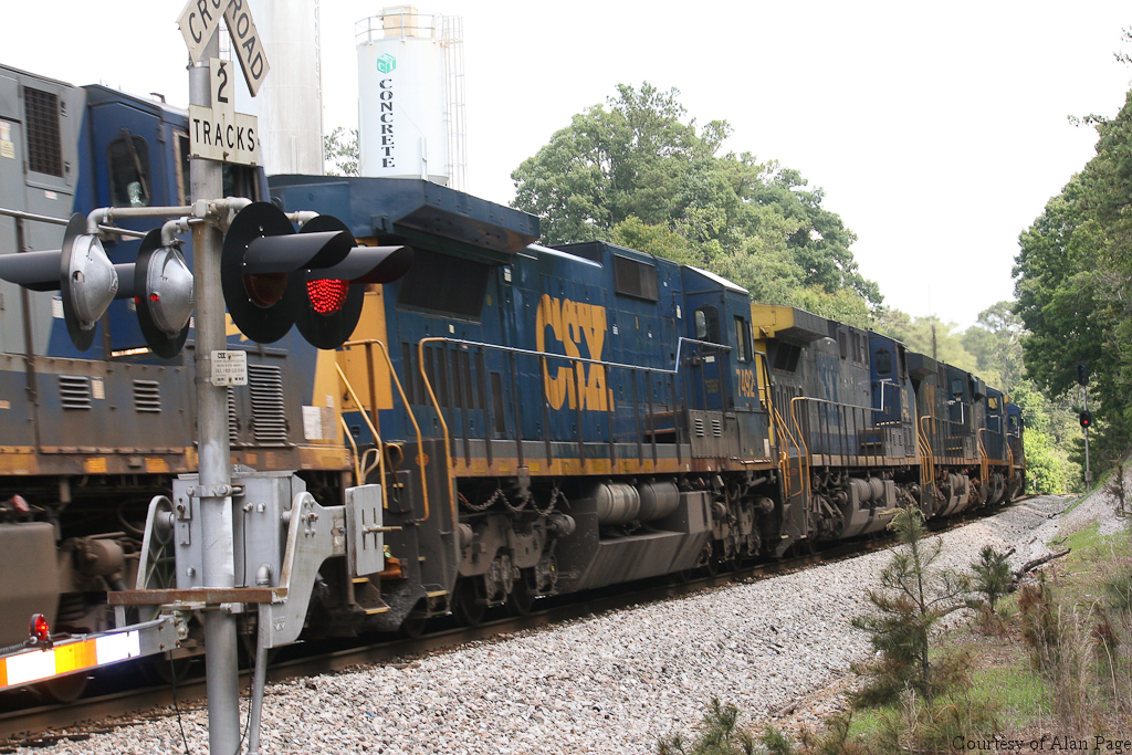 CSXT C40-8 7492 (ex-CR 6037) runs fifth in a line of nine GE's rolling northbound past the gates at Dodson Rd in Union City, GA.