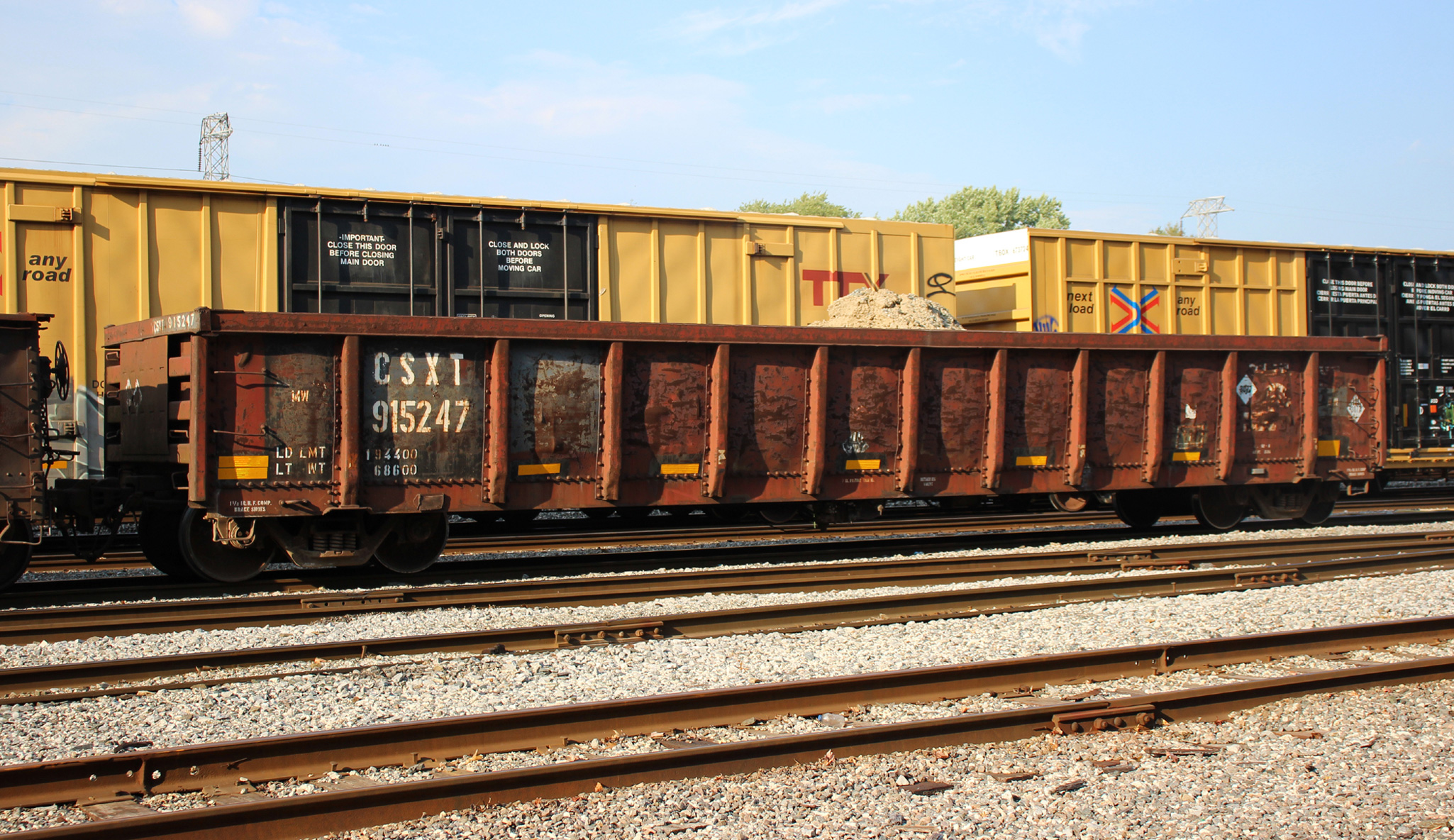 CSXT 915247 is seen at Elsmere, DE on 9/28/19. Car is ex NYC 588389/CR 588389/CR 577342/PC 577342 and was built 5-68 as a PC G43A class gon.