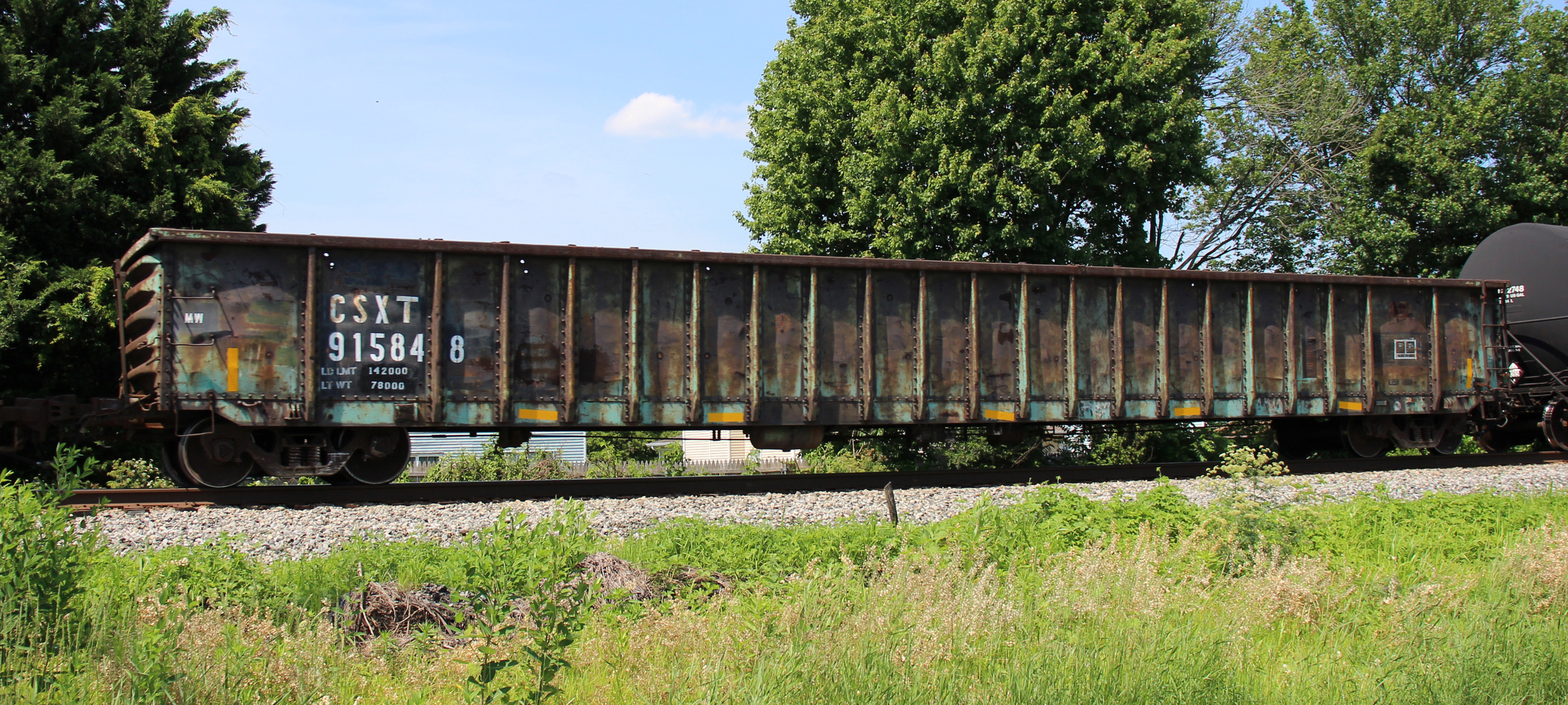 CSXT 915848 is seen in the consist of CSX Q409-16 at Newark, DE on 6/24/18. Car is ex NYC 592073/PC 592073 and was built 5-70.
