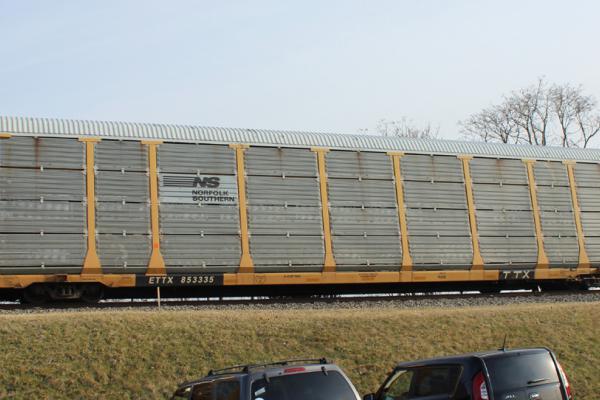 ETTX 801035 Rack class ML3N autorack (CR 7036) at Peachtree City, GA on November 5, 2017.