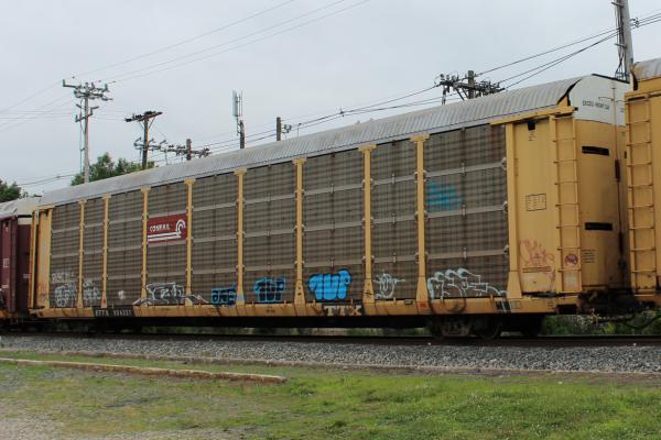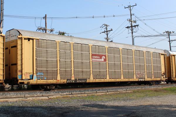 ETTX 908664 is seen on 33A at Wormleysburg PA on 7/9/11. Rack number is CR 8570 built 12-89 and rebuilt and repainted yellow 9-98.