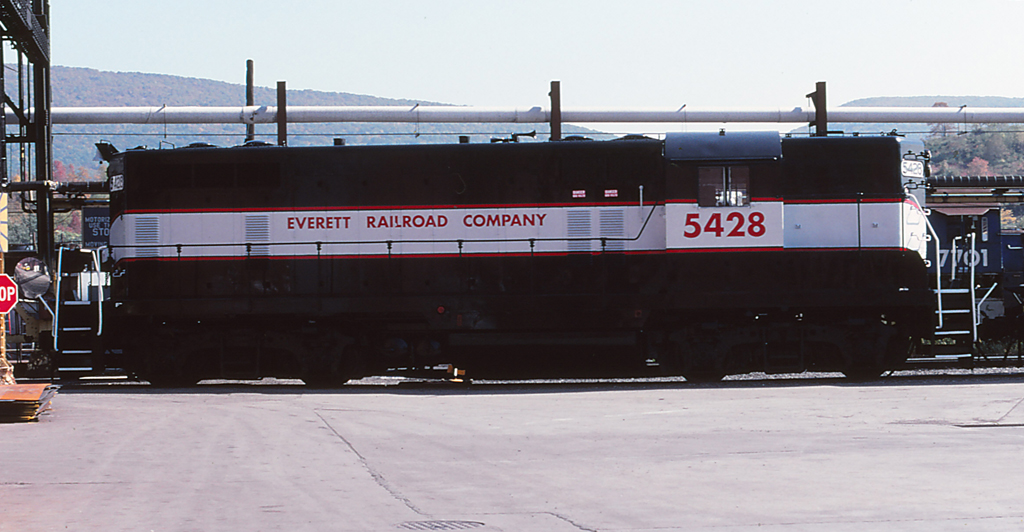 EV 5428 is seen on Display during Railfest at Altoona PA on 10/5/97. Unit is ex CR 5428/CR 5874/PC 5874/PRR 8574.
