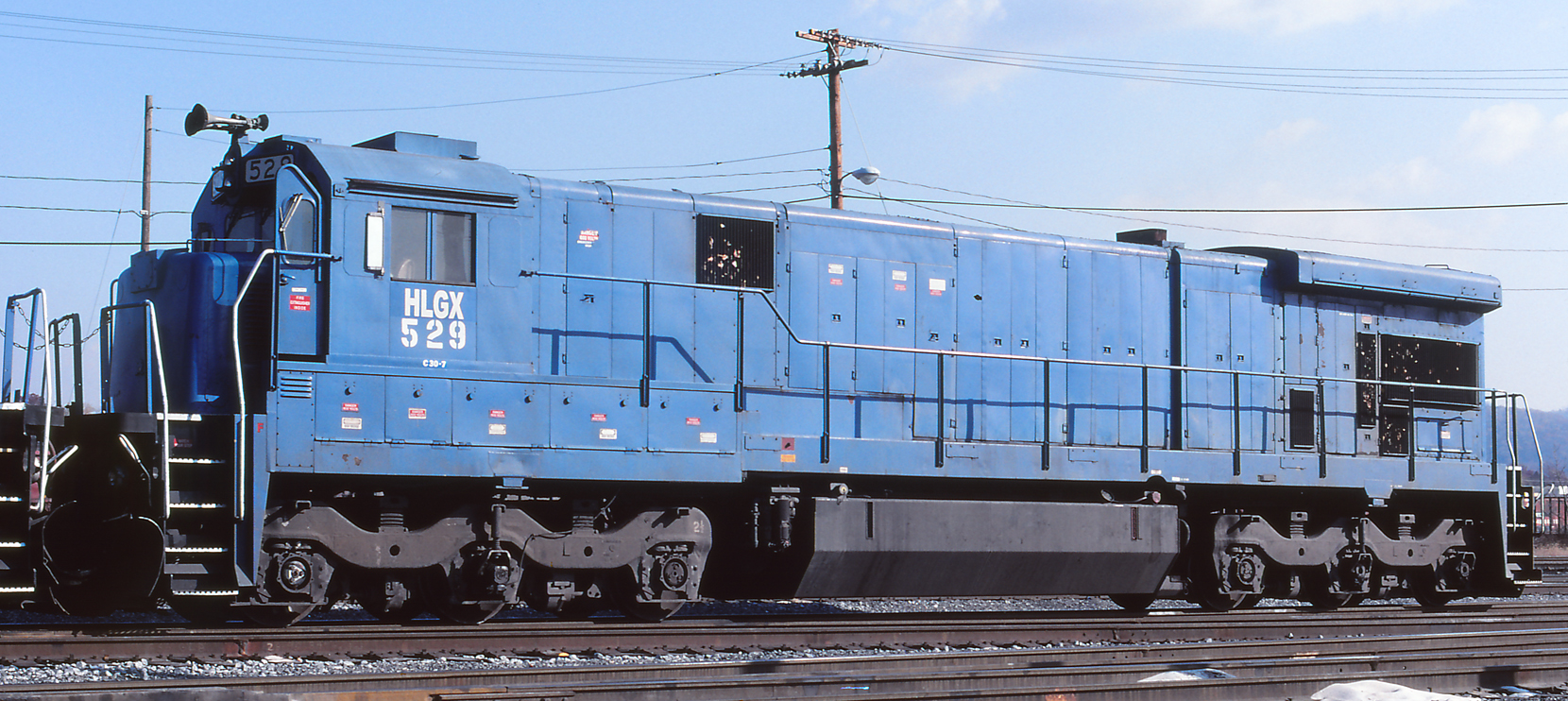 HLGX 529 (ex CRL 529/GECX 8049/ATSF 8049) is at Cumberland, MD on 11/6/99.