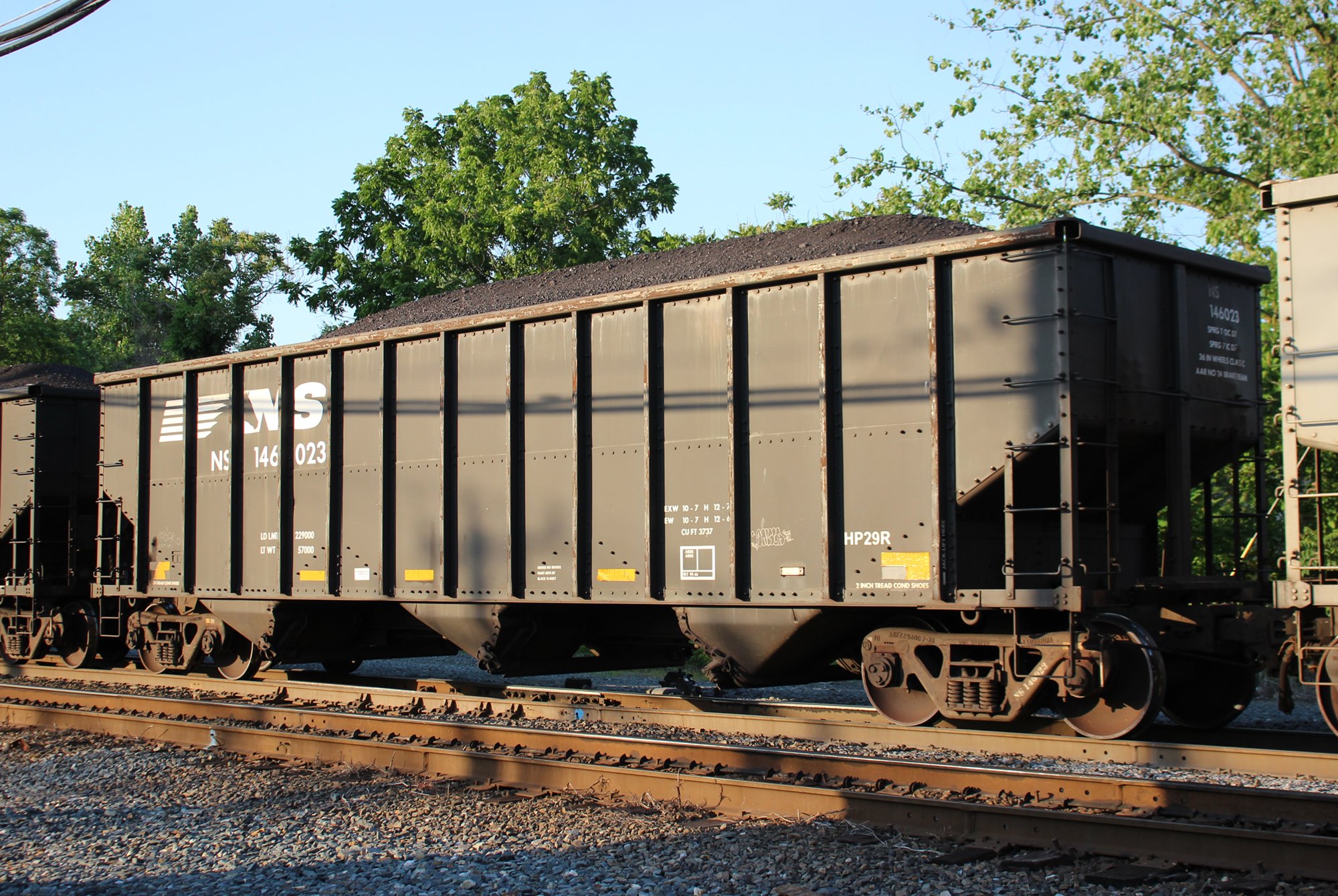 NS 146023 is seen in the consist of NS Y92 at Perryville, MD on 6/5/21. Car is ex CR 498124, which was built as a CR H2B class hopper, in 5-95. It was then re-bodied and renumbered to NS 146023 in 11-13 by FCA at Roanoke, VA.