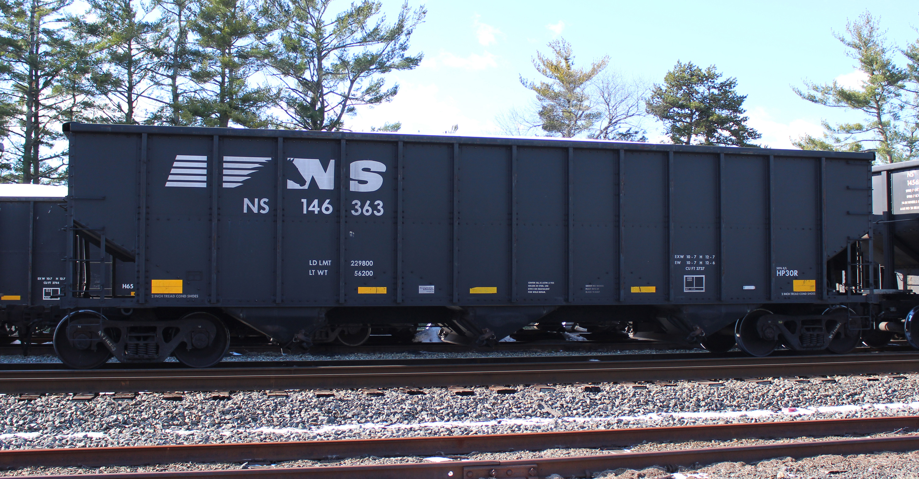 NS 146363 is seen at Deepwater, NJ on 3/16/17. Car is ex CR 498832, built 7-98 and was re-bodied 7-13 by FCA at Roanoke, VA.