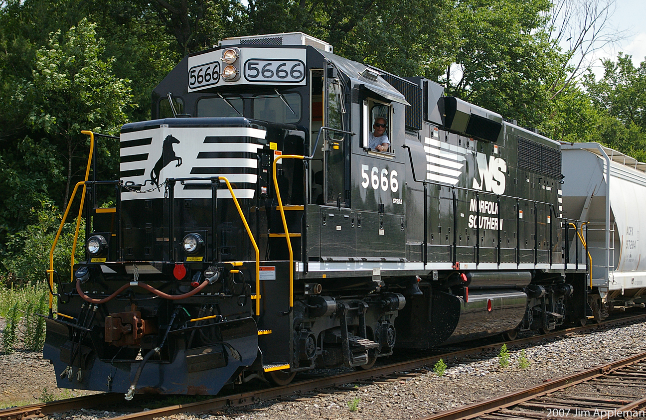 Ex-PC/CR 7698 → NS 2892 GP38, rebuilt to NS 5666 GP38-2, on the H44 local out of Northumberland Yard. After running around its train, it's ready to head west on the Watsontown Industrial Track.