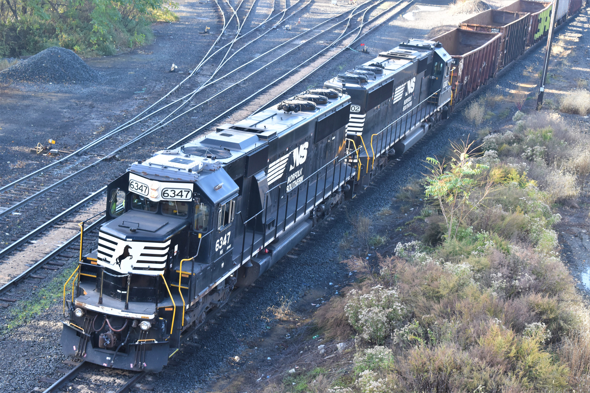 NS SD40E #6347 & #6302 switching cars for a departing freight in Enola, PA. November 5, 2020