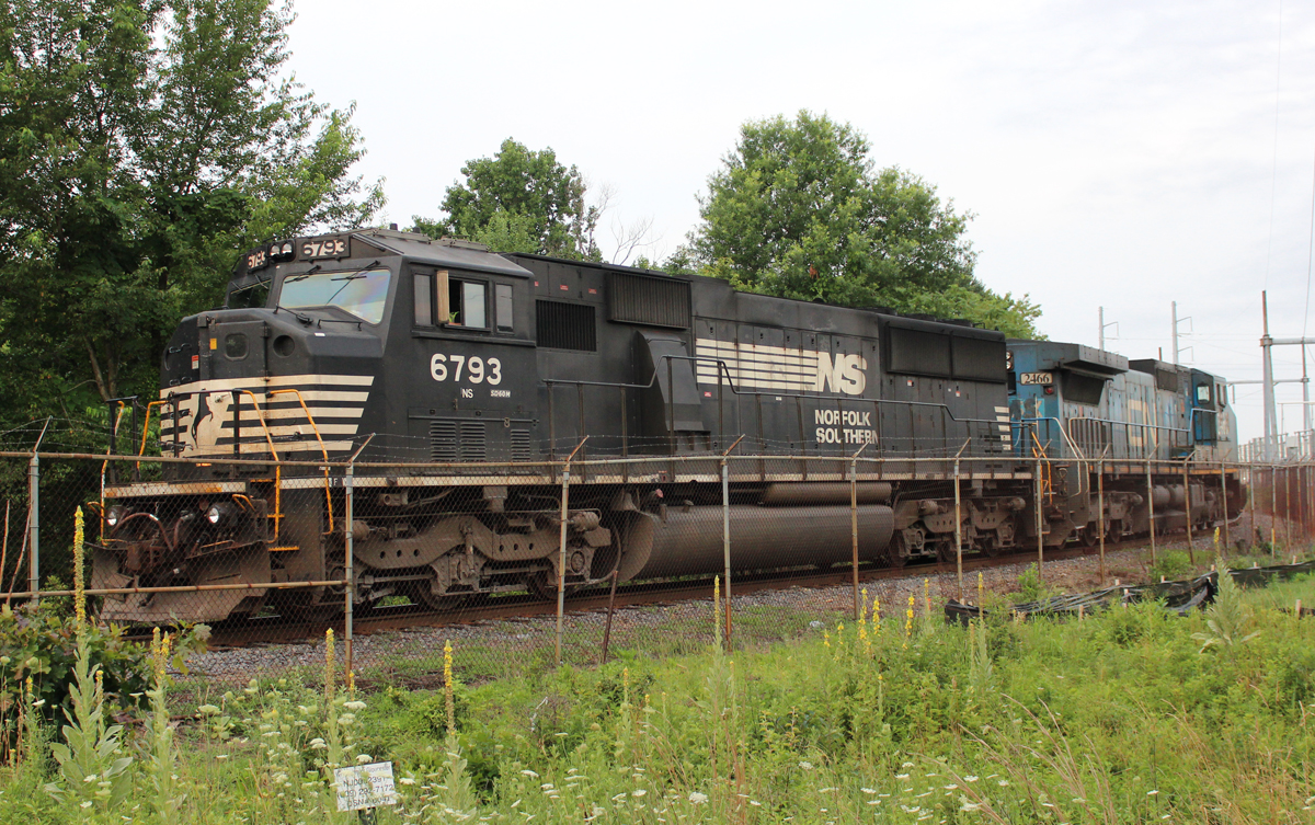 NS 6793 (CR 5553) and IC 2466 (LMS 739) are seen at Westville, NJ on 7/10/14.