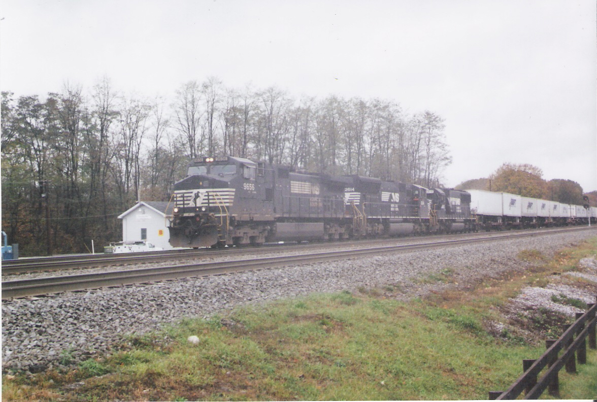 Eastbound NS freight with NS 9656, 2614, and 6610 for power pass thru Cresson, PA on Oct. 25, 2008