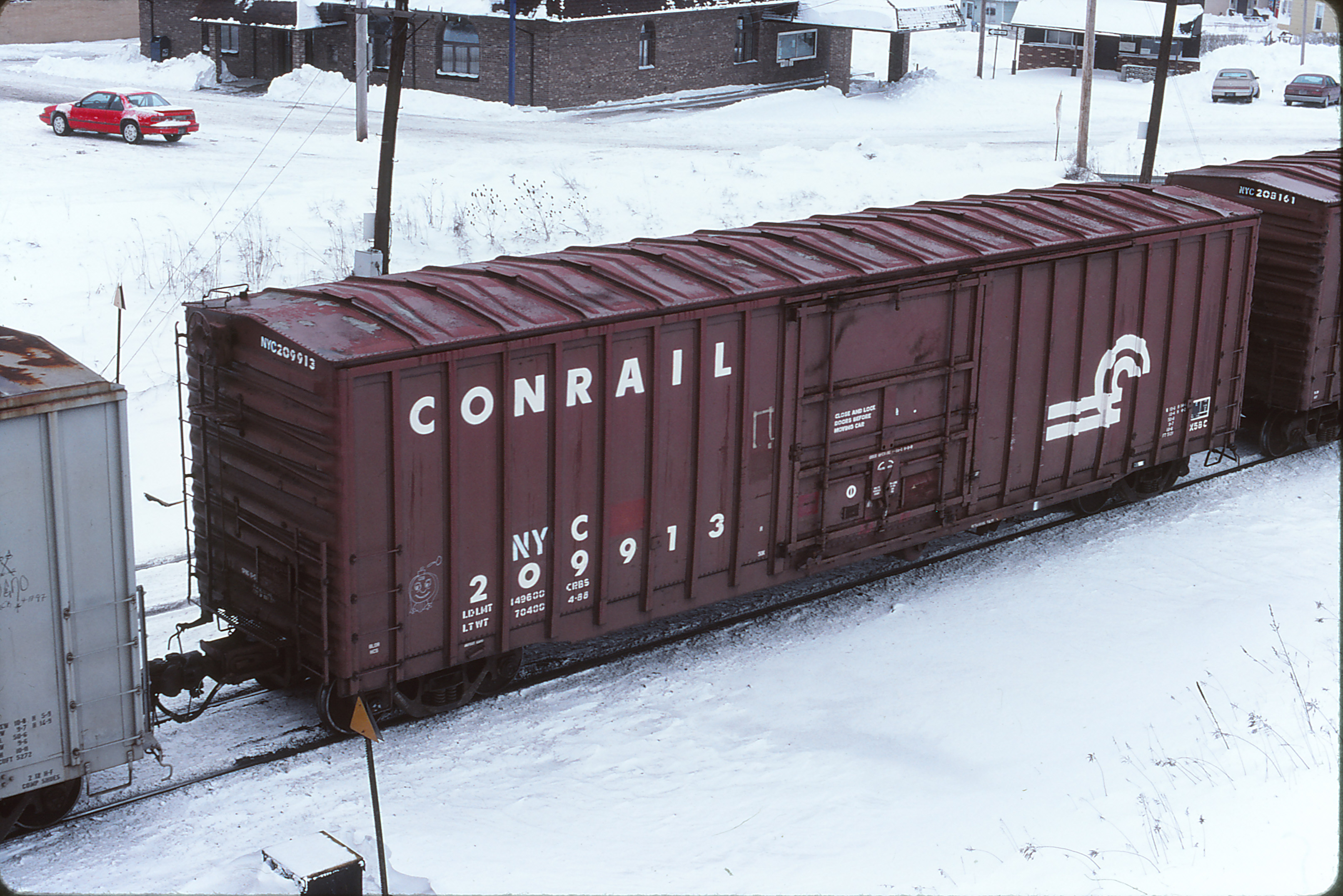 NYC 209913 is seen in the consist of ALPI-4F at Gallitzen, PA on 3/5/99. Car is ex CR 209913/CR 230689/PRR 113223 and was deleted 5/22/01.