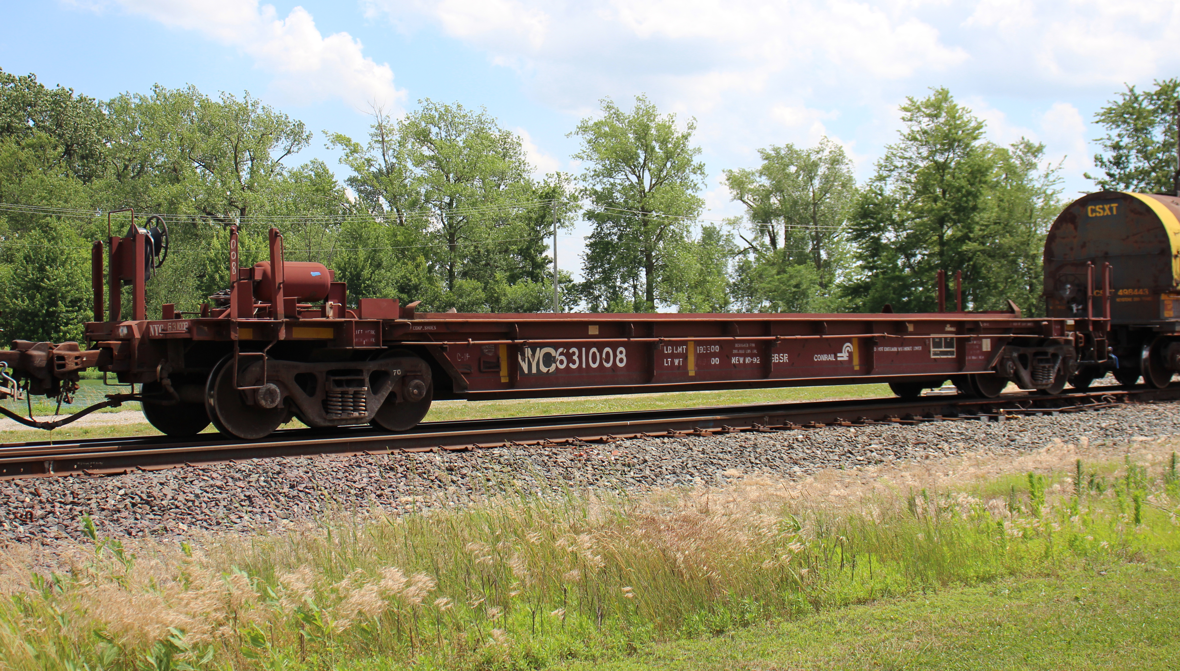 NYC 631008 is seen in the consist of CSX B523-27 at Deshler, OH on 6/27/25. Car is ex CR 631008 and was built 10-92 by Thrall.
