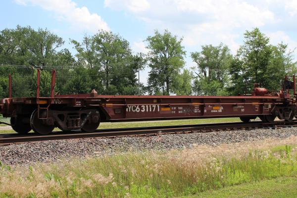 NYC 631211 is seen in the consist of CSX B522-23 at Deshler, OH on 6/23/23. Car is ex CR 631140 and was built 9-93 by Thrall.