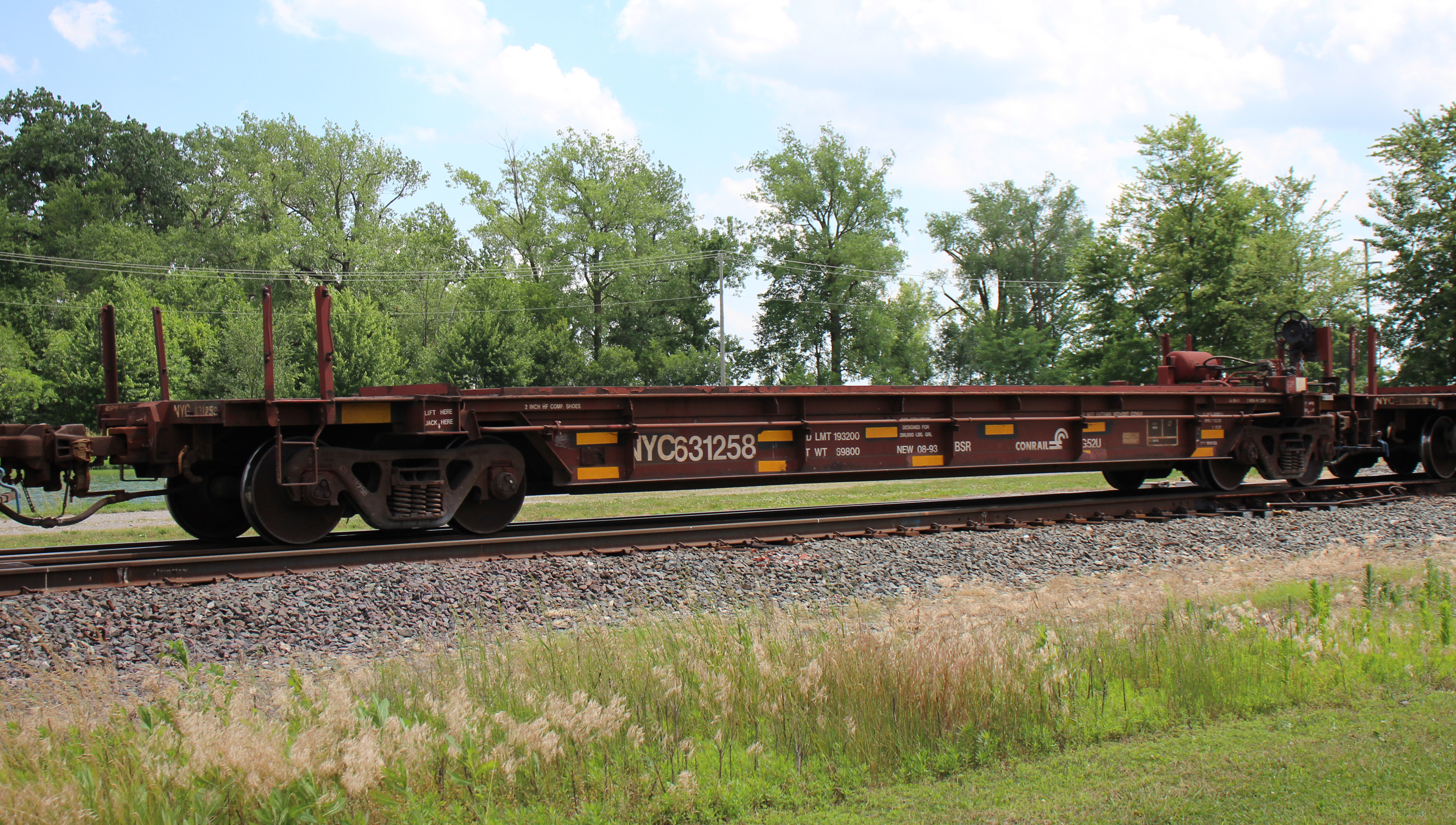 NYC 631258 is seen in the consist of CSX B523-27 at Deshler, OH on 6/27/25. Car is ex CR 631258 and was built 8-93 by HCS