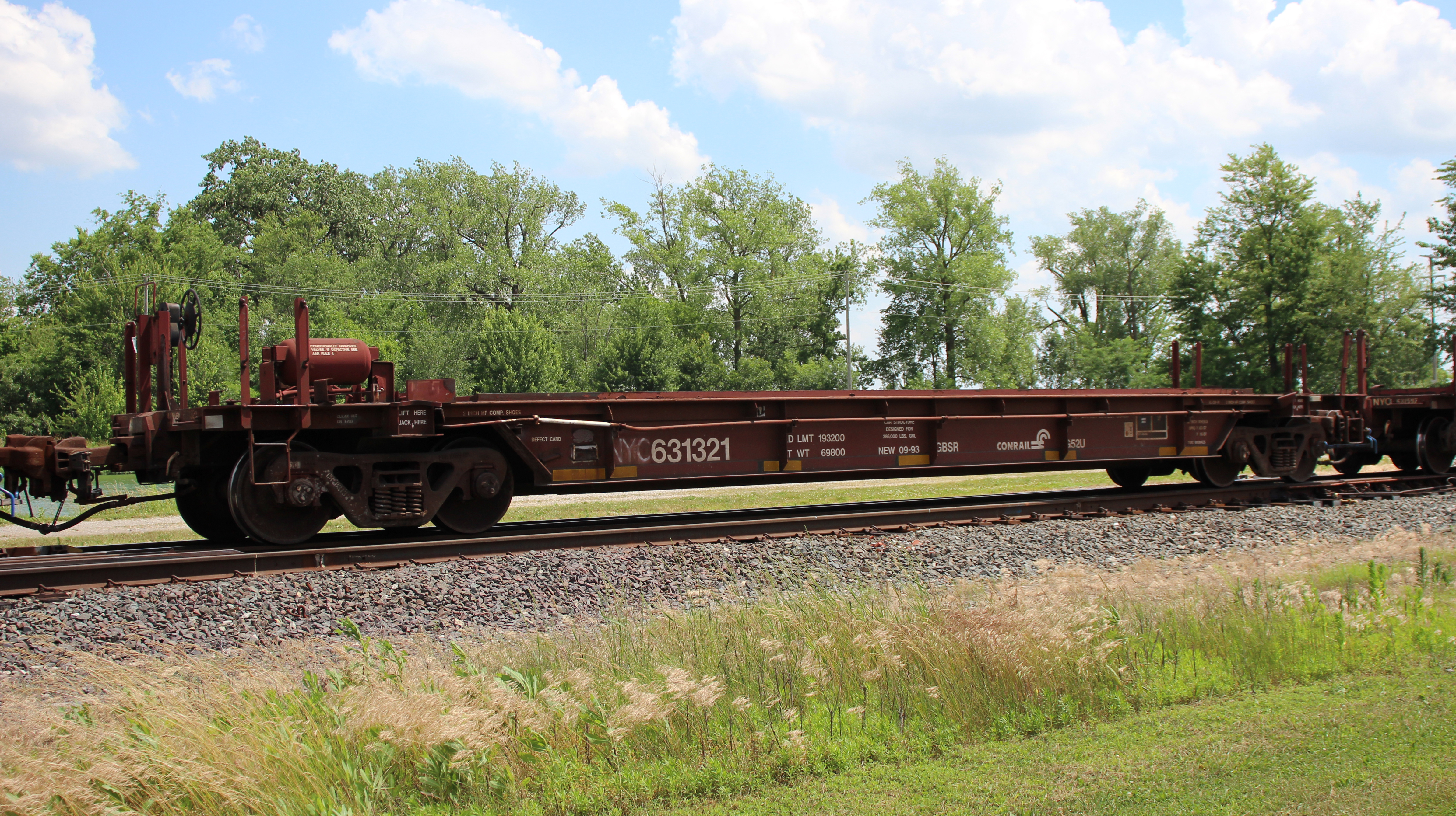 NYC 631321 is seen in the consist of CSX B523-27 at Deshler, OH on 6/27/25. Car is ex CR 631321 and was built 9-93 by HCS