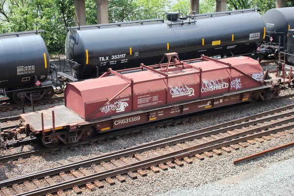 Former Conrail G52U class coil car NYC 631432 rolls through Fairburn, GA on March 29, 2019.