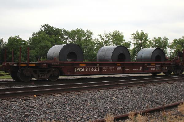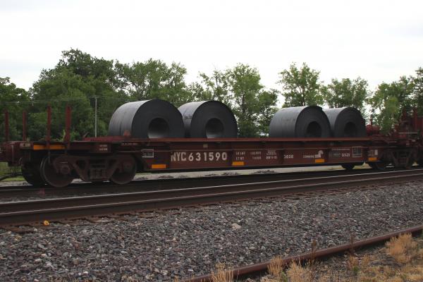 Former Conrail G52V class coil car NYC 631468 rolls through Union City, GA on April 25, 2019.