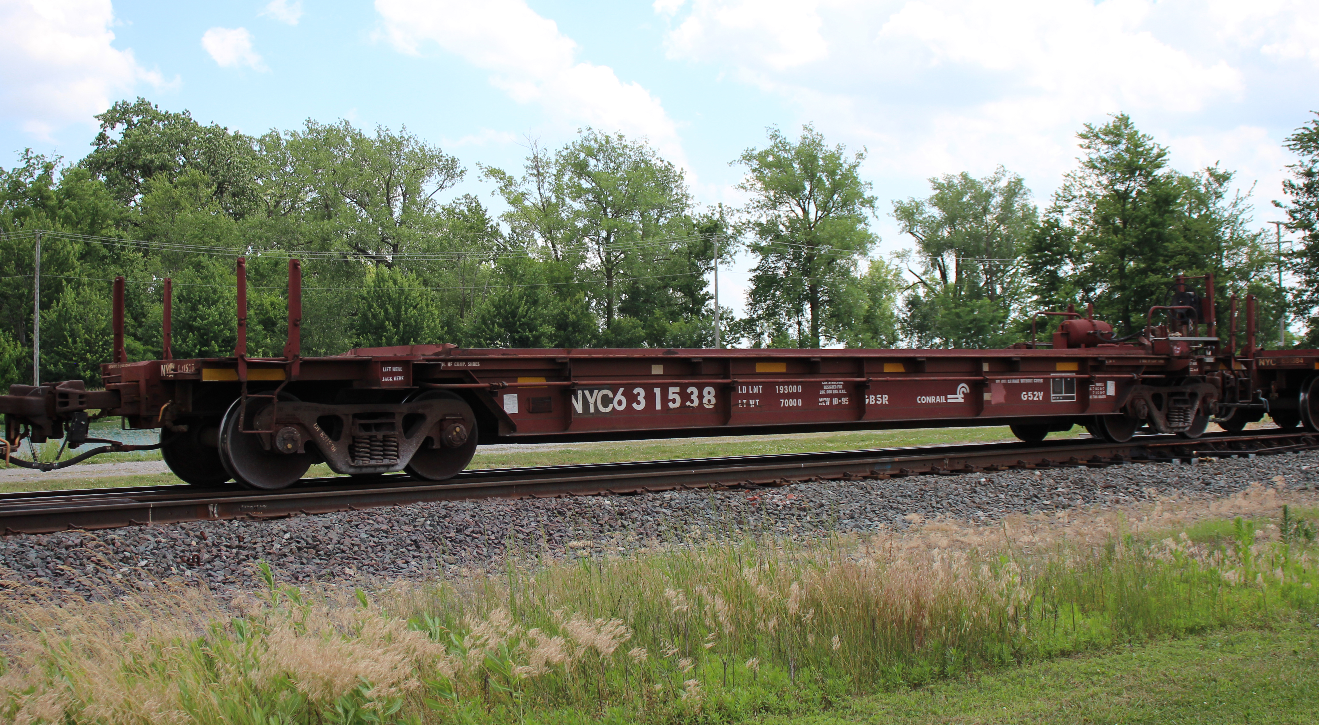 NYC 631538 is seen in the consist of CSX B523-27 at Deshler, OH on 6/27/25. Car is ex CR 631538 and was built 10-95 by HCS.