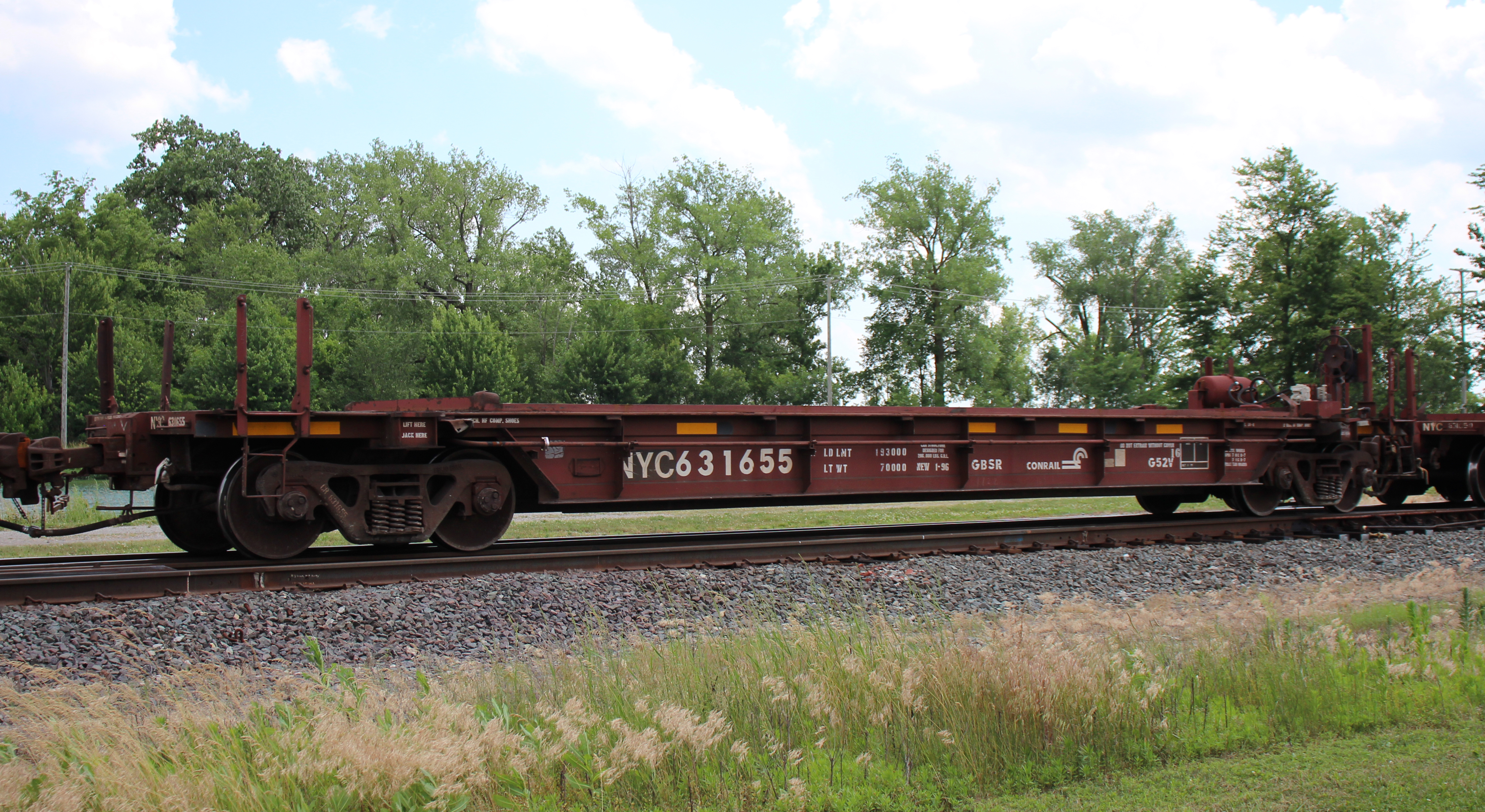 NYC 631655 is seen in the consist of CSX B523-27 at Deshler, OH on 6/27/25. Car is ex CR 631655 and was built 1-96 by HCS.