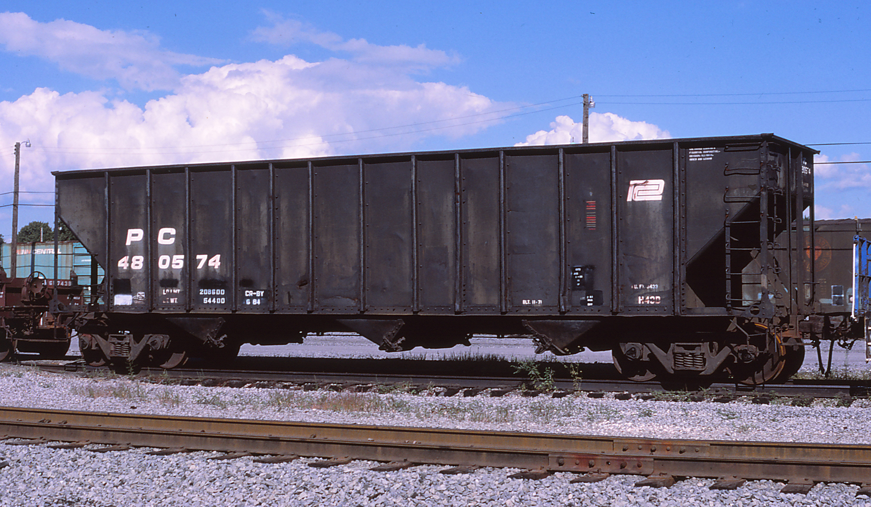 PC 480574 is seen here in Oct of 1988. Car was built 11-71. It later became CR 480574 which was deleted 1/18/95 becoming SPSX 480574 and was finally deleted 4/16/02.