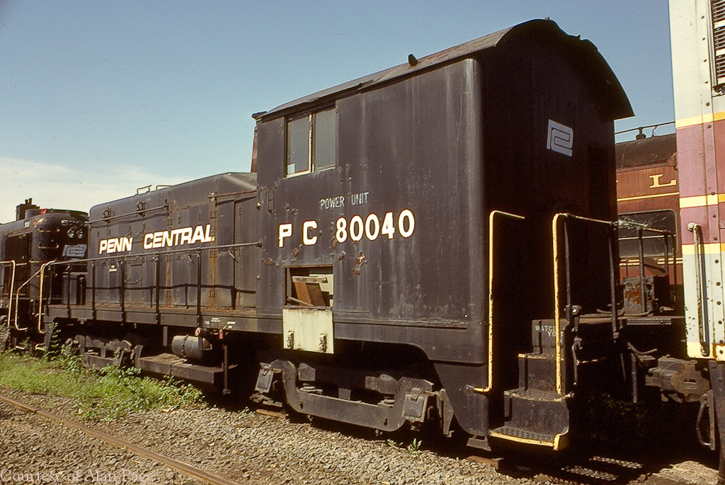 PC converted an SW-1 into "Power unit" 80040. The unique locomotive was resting in the Juniata shops deadlines in August, 1978.