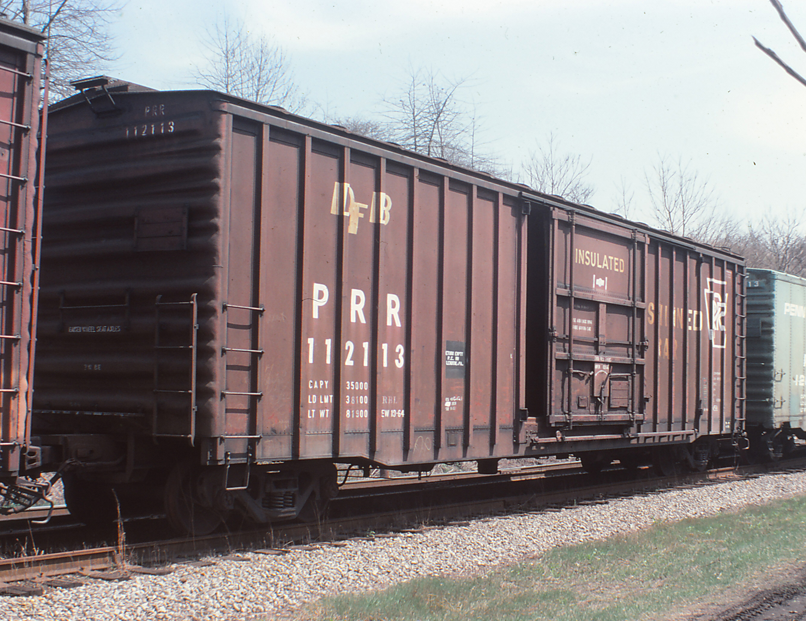 PRR 112113 is seen in April of 1980. Car was built 12-64.