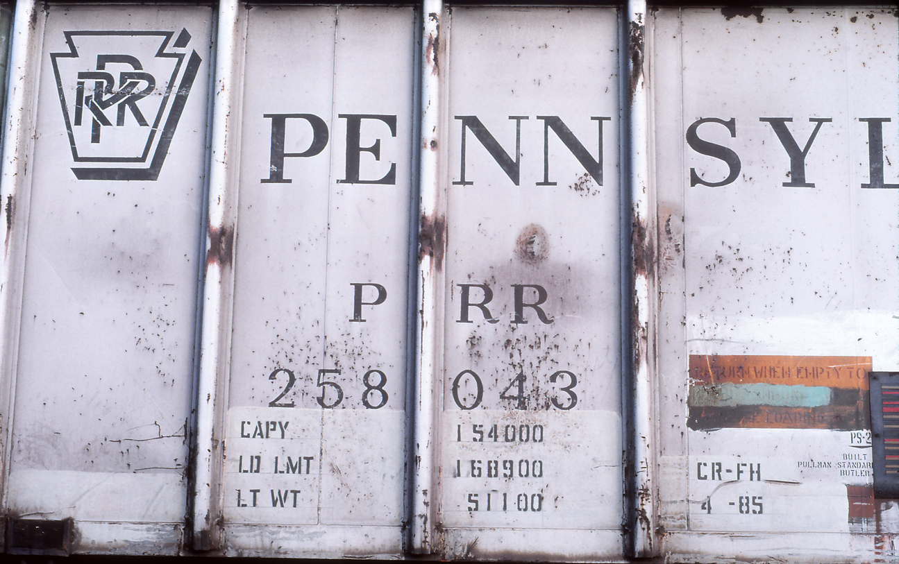 Detail view of PRR 258043 on the Winchester & Western RR in Bridgeton, NJ on 6/24/95. Car was built 4-58. It was to become CR 875110, but never did, and was deleted as PRR on 12-5-95.