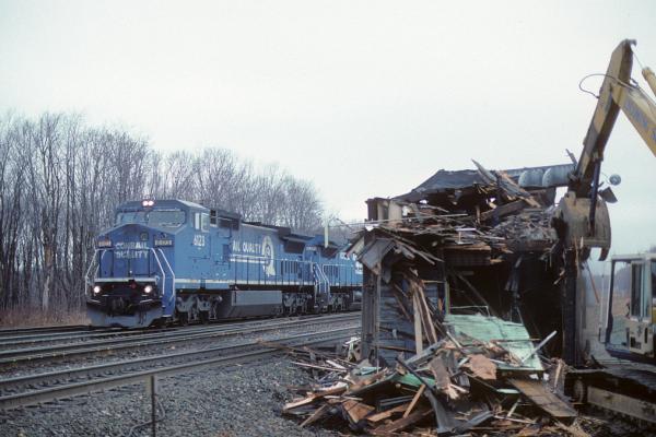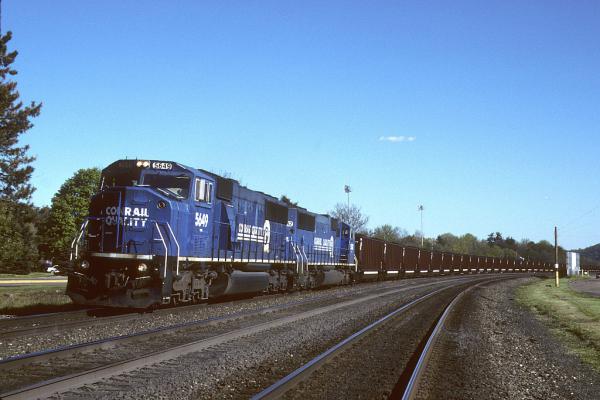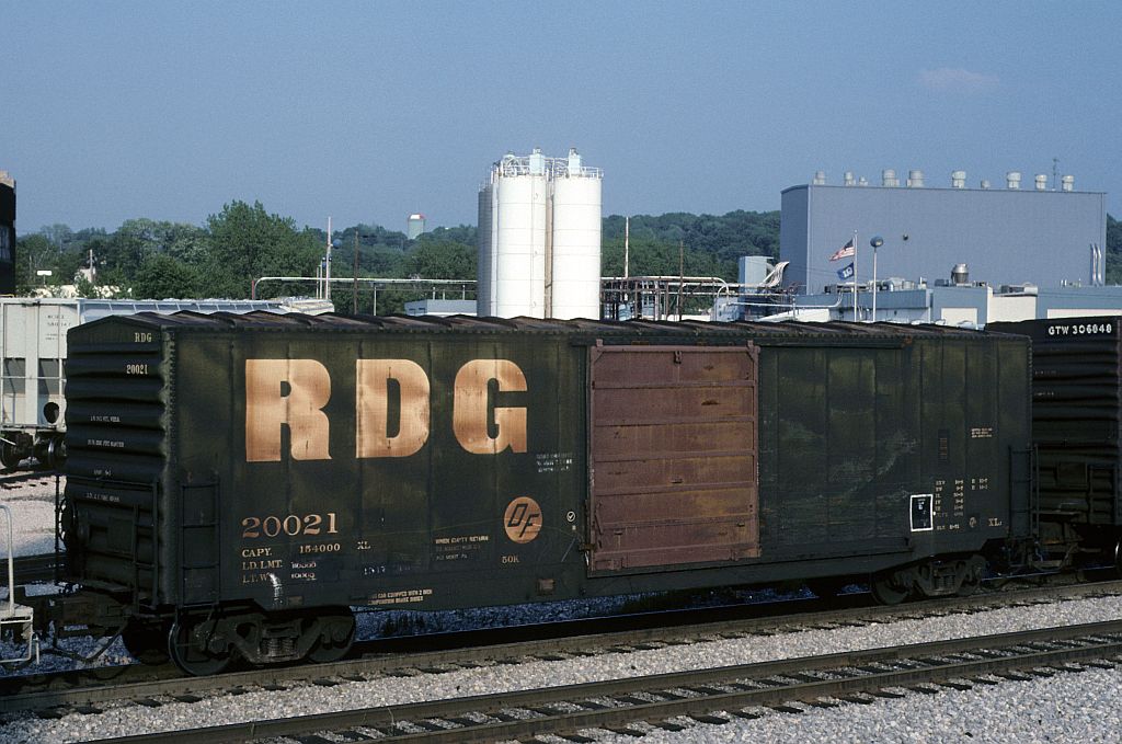A former Reading Lines 50 foot car, class XLj on the RDG, passes through Akron on the CSX in May 1991. The car was built by Pullman Standard in Bessemer, Ala. in Nov 1972.