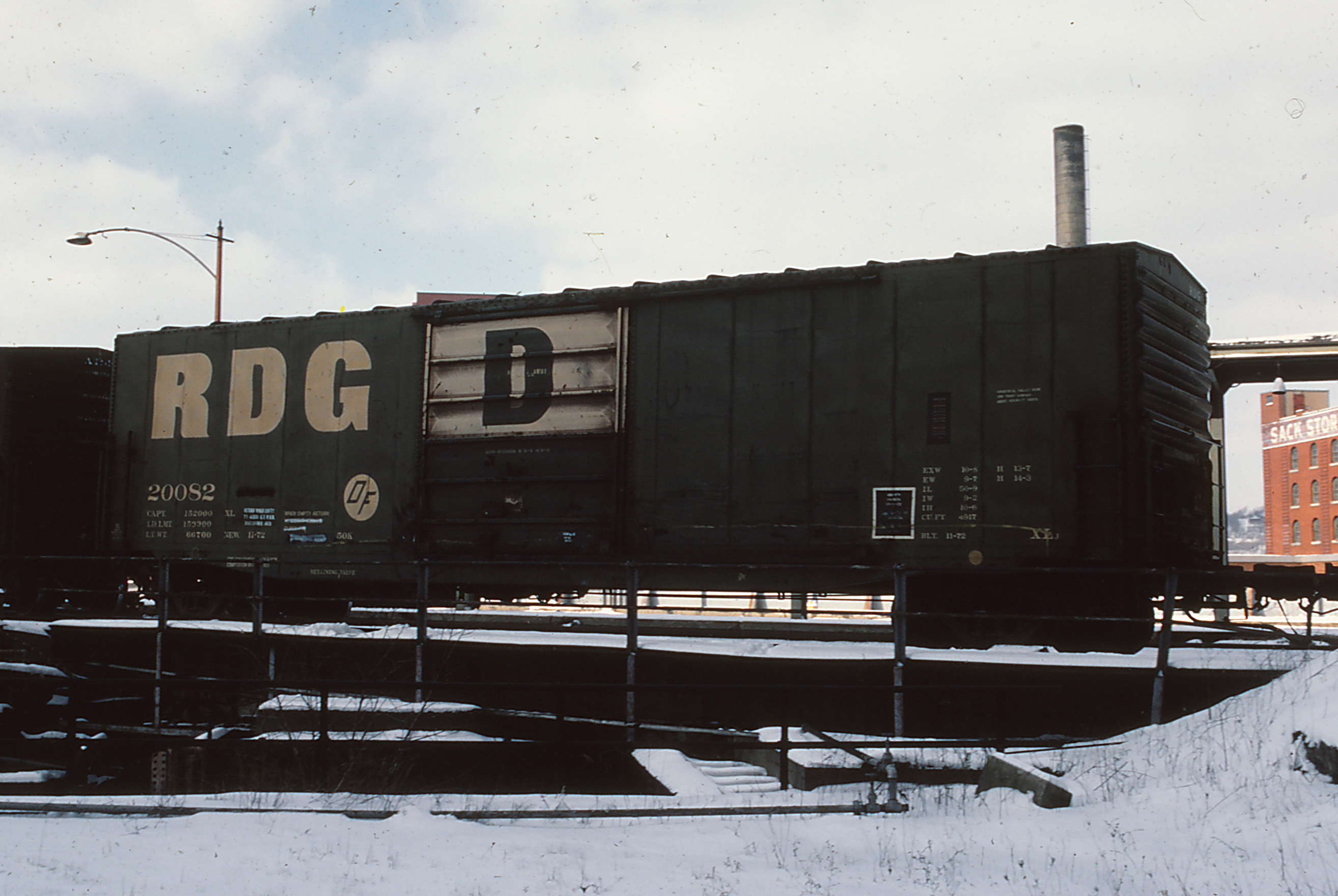 RDG 20082 is seen here at Pittsburgh, PA in April of 1986. Car was built 11-72 by P-S and later became CR 231679 and was deleted 12/1/00.