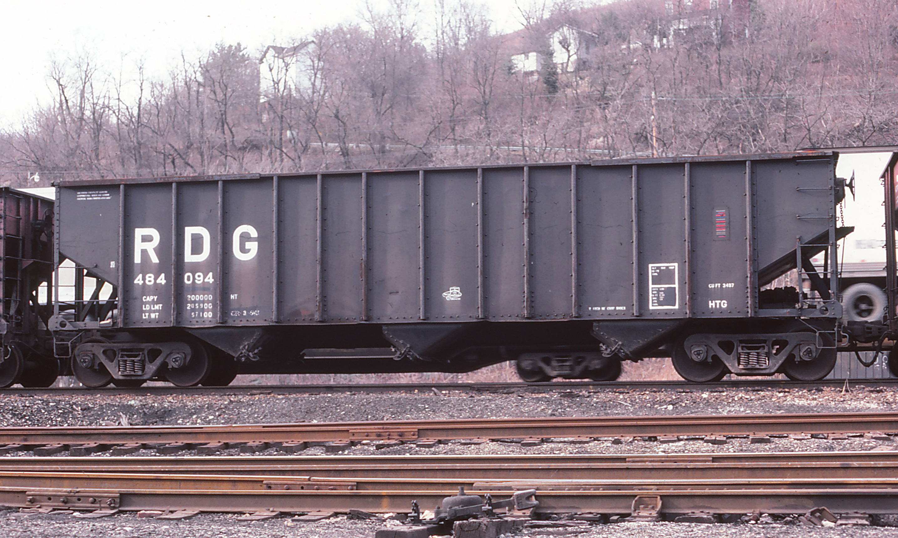 RDG 484094 is seen at South Fork, PA in April of 1987. Car would be deleted on 7/1/01, becoming RBMN 7351 which was deleted on 3/6/14.