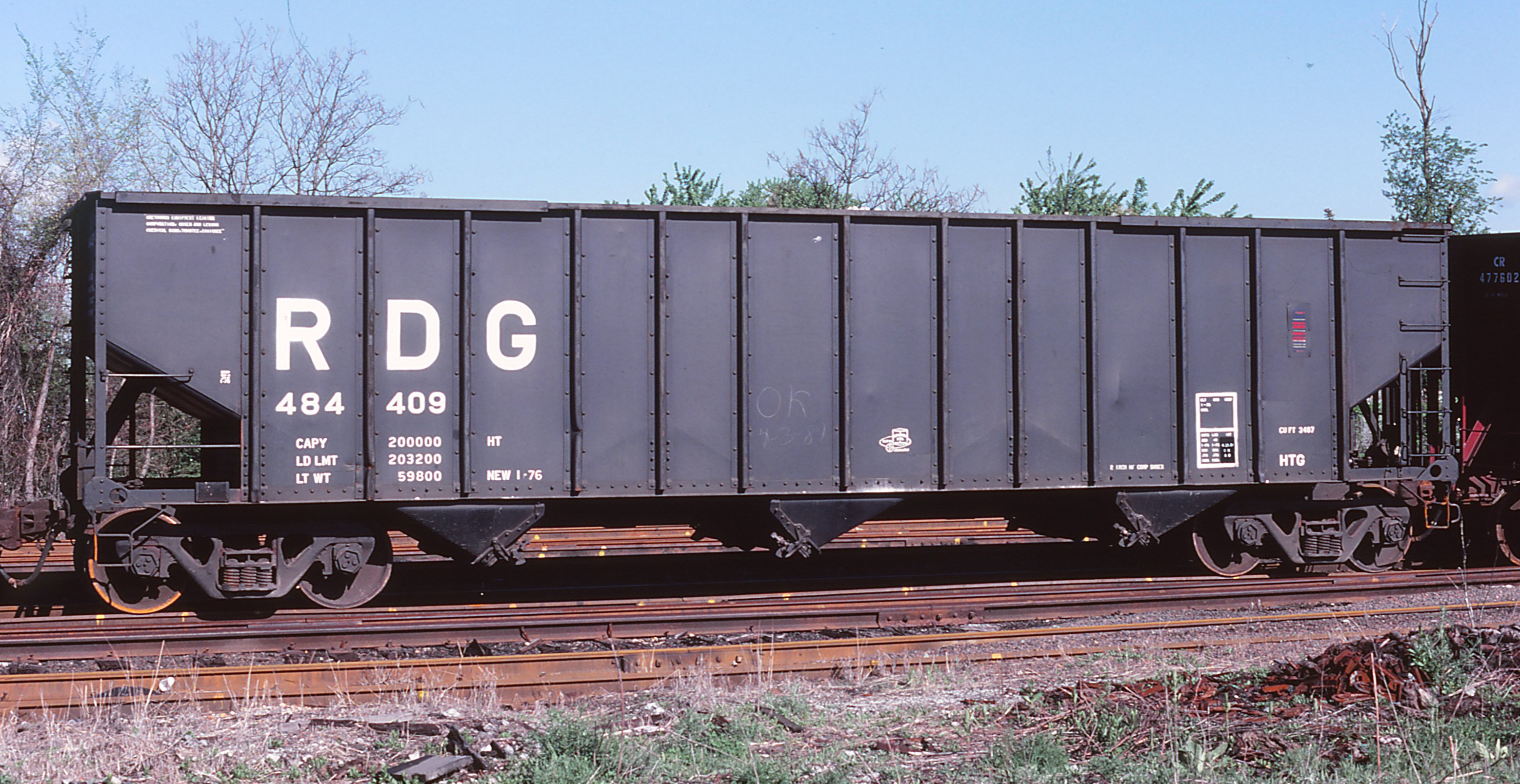 RDG 484409 is seen at Kingston, NY in May of 1981. Car was built 1-76 by Bethlehem Steel as part of Lot 3400-431. It was later re-stenciled to NYC 484409 after CR was split up in 1999 and was deleted by CSX on 2/24/00.