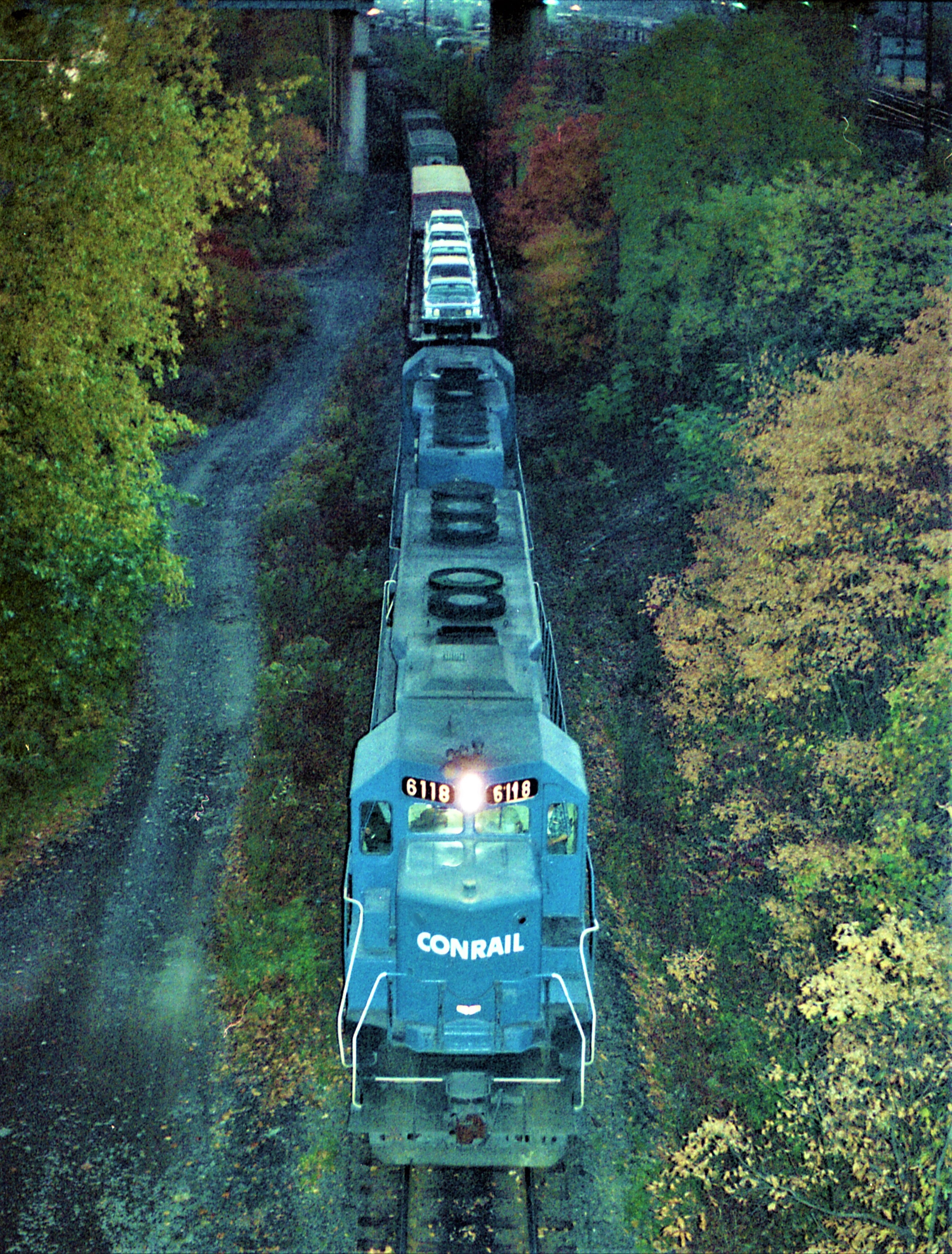 The SD-45 #6118 & other unit are on the Enola, PA "G" track, also known as the "low line". This track bypasses the Enola yard. This photo is in the early evening on October, 31 1978.