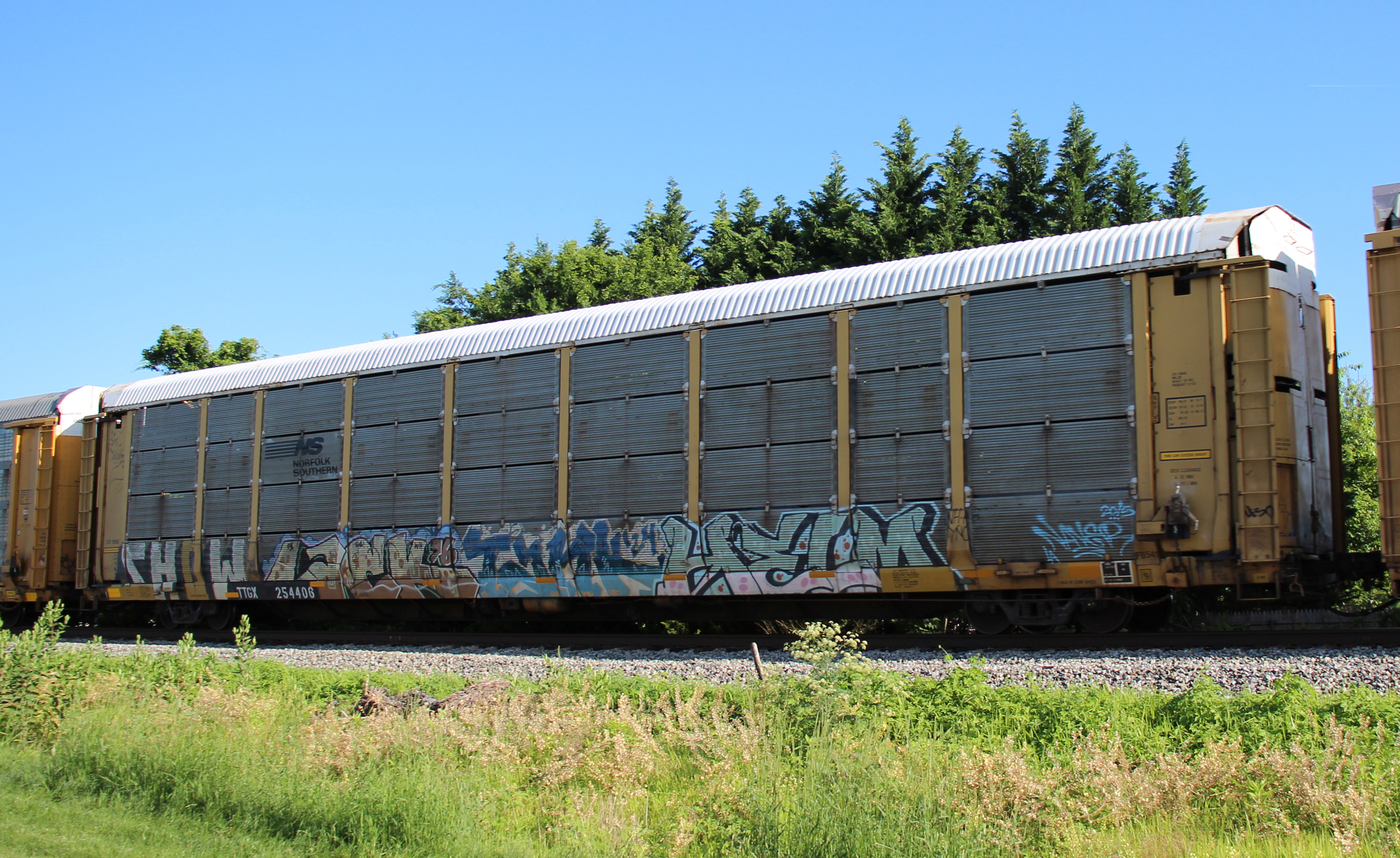TTGX 254406 is seen in the consiston CSX Q216-09 at Newark, DE on 6/12/18. Rack number is CR 1569, built 12-85, rebuilt 2-03 and is now classed FB541 by NS, but is also stenciled ML2E.
