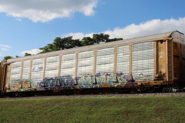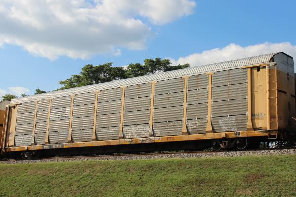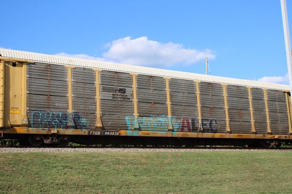 TTGX 942361 is seen in the consist of NS 11N at Marysville, PA on 7/27/24. Rack was built as CR 9664, a ML2L class rack, in 3-93. It then was rebuilt, repainted and renumbered to NS 28648 in 1-19 by THCG. Rack does not have a new NS rack class stenciled on it.