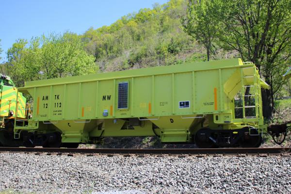 AMTK 12114 is seen in the consist of NS M9G at Rockville, PA on 4/27/19. Car is ex AFCX 905062/CR 56694 and was built 11-84 by Greenville.