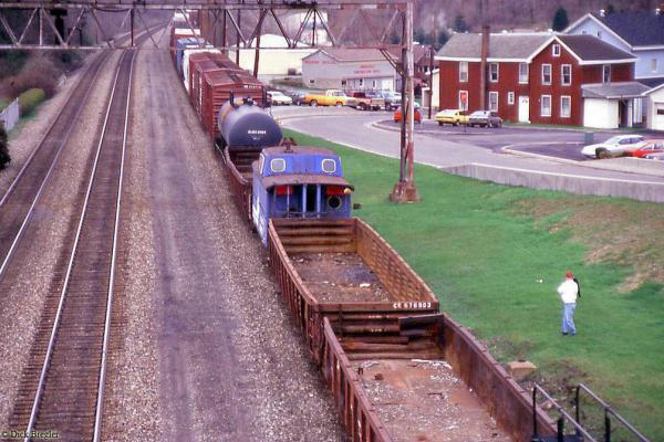 A westbound ballast train is seen near Warrior Ridge, PA in 1993 Photographer Dick Bregler Photo Date 01/07/09 Photo Location Name Pittsburgh Line See More Photos Conrail Scenic and Action Photographs Dick Bregler's Conrail Action 1993 Images