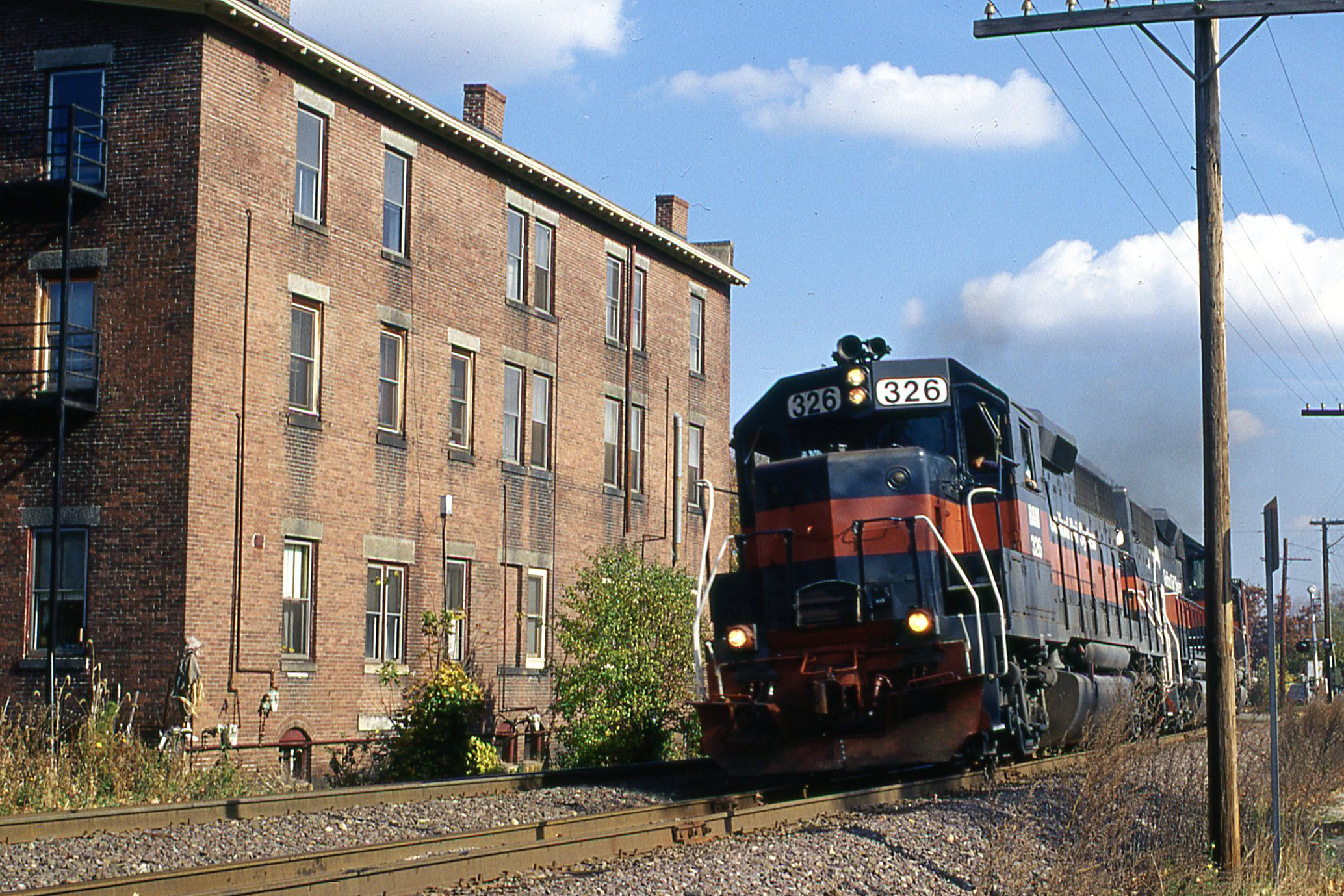 BM 326 (Boston & Maine) EMD GP40 Pan AM Fitchburg Line Shirley MA with train PORO