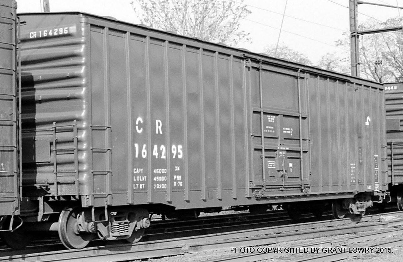 CR 164295 is seen at Columbia, PA. Car is ex PC 164295/PRR and was built 1-65; painted P59 11-76. It was later renumbered to CR 209912, and was deleted on 8/12/00.