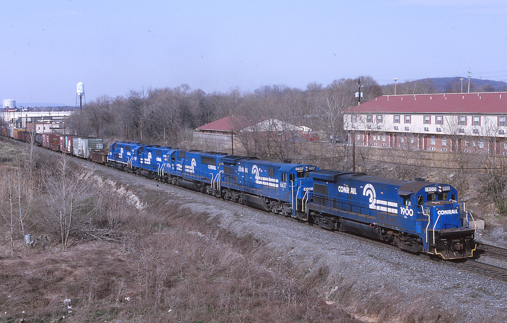CR 1900 is seen leading 4 other units at Allentown, PA on 4/15/92. Unit later worked as NS 4054, DCLR 4054 and is currently SLRS 4054. Photo by Olev Taremae.